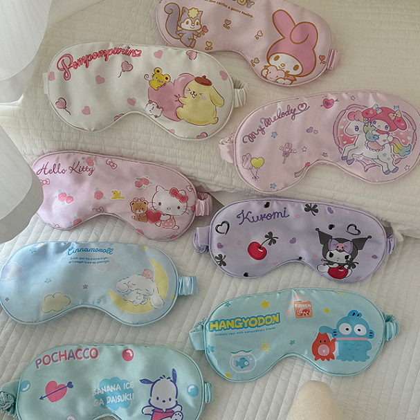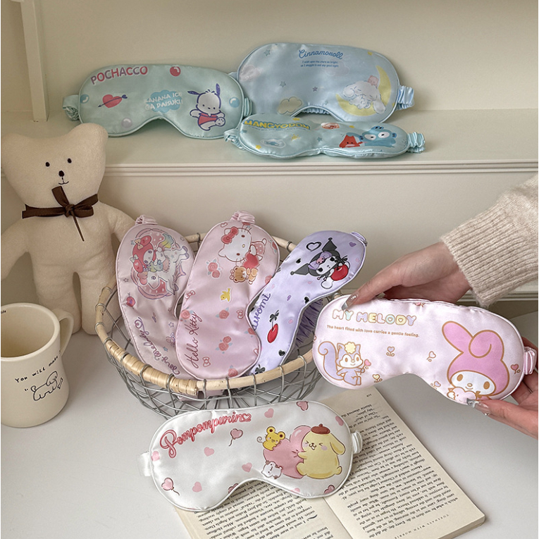 พร้อมส่ง ผ้าปิดตา ที่ปิดตาสำหรับ นอน พักผ่อน ลายลิขสิทธิ์แท้ จาก SANRIO ลายการ์ตูนผ้าซาตินสายปรับได้