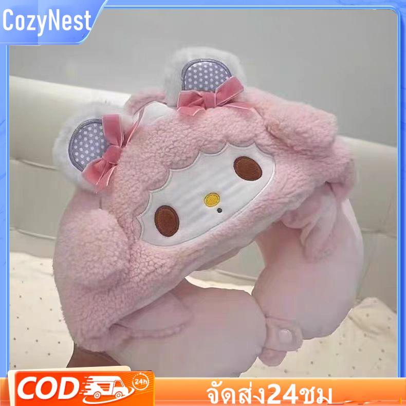 หมอนตุ๊กตาตัวไหญ หมอนรองคอพร้อมฮู้ด หมอนรองคอสำหรับเดินทางพร้อมหมวก หมอนรองคอรูปทรงU หมอนรองคอลายการ์ตูนลายเปียโน สติตช์