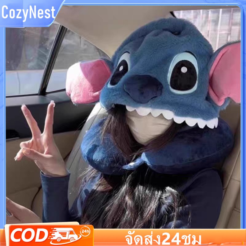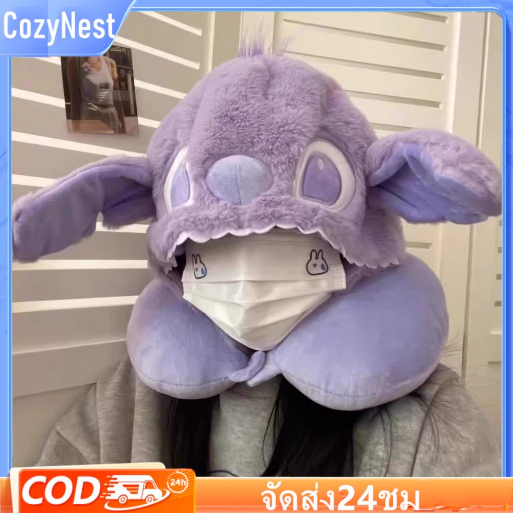 หมอนรองคอพร้อมฮู้ด หมอนรองคอรูปทรงU หมอนรองคอลายการ์ตูนลายเปียโน สติตช์ หมอนรองคอสำหรับเดินทางพร้อมหมวก หมอนตุ๊กตาตัวไหญ