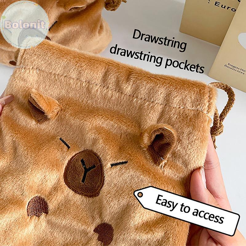 Bolonit ใหม่ Capybara Plush Porpoise Drawstring Bundle กระเป๋าแบบพกพา Plush กระเป๋าขนาดใหญ่ความจุกระเป๋าถือ Casual น้ําหนักเบากระเป๋าเดินทาง TH