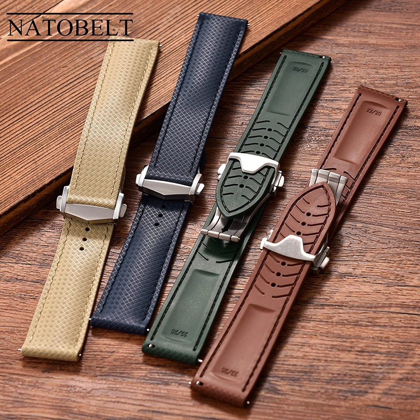 ใหม่รูปแบบเขตร้อน FKM สายนาฬิกายาง 20 มม.22 มม. Quick Releas ดําน้ํา Deployant สายนาฬิกา Perfect Fit แบน End Universal สายรัดข้อมือนาฬิกาอุปกรณ์เสริม