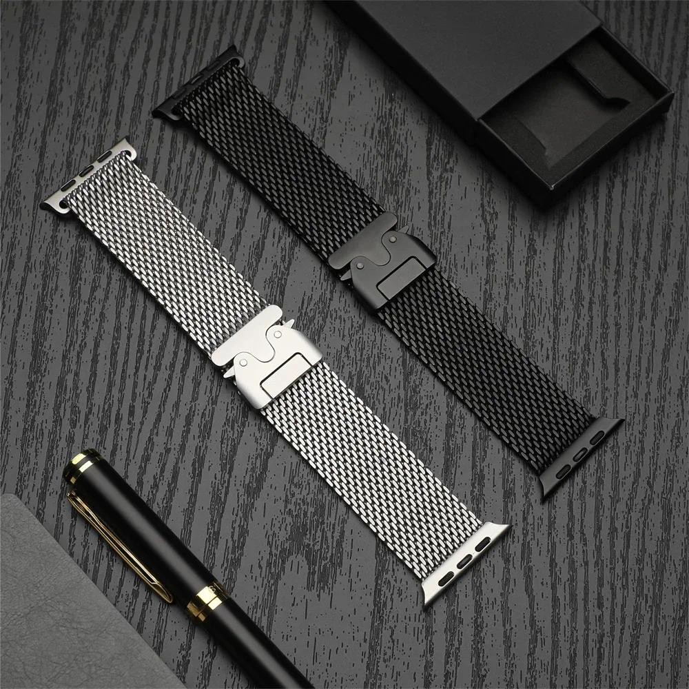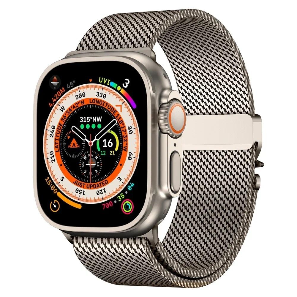 ไทเทเนียม Milanese Loop สําหรับ Apple watch Ultra 2 49 มม.46 มม.42 มม.41 มม.45 มม.44 มม.38-40 มม.Series 10 9 8 7 6 5 4 SE สายรัดอุปกรณ์เสริม