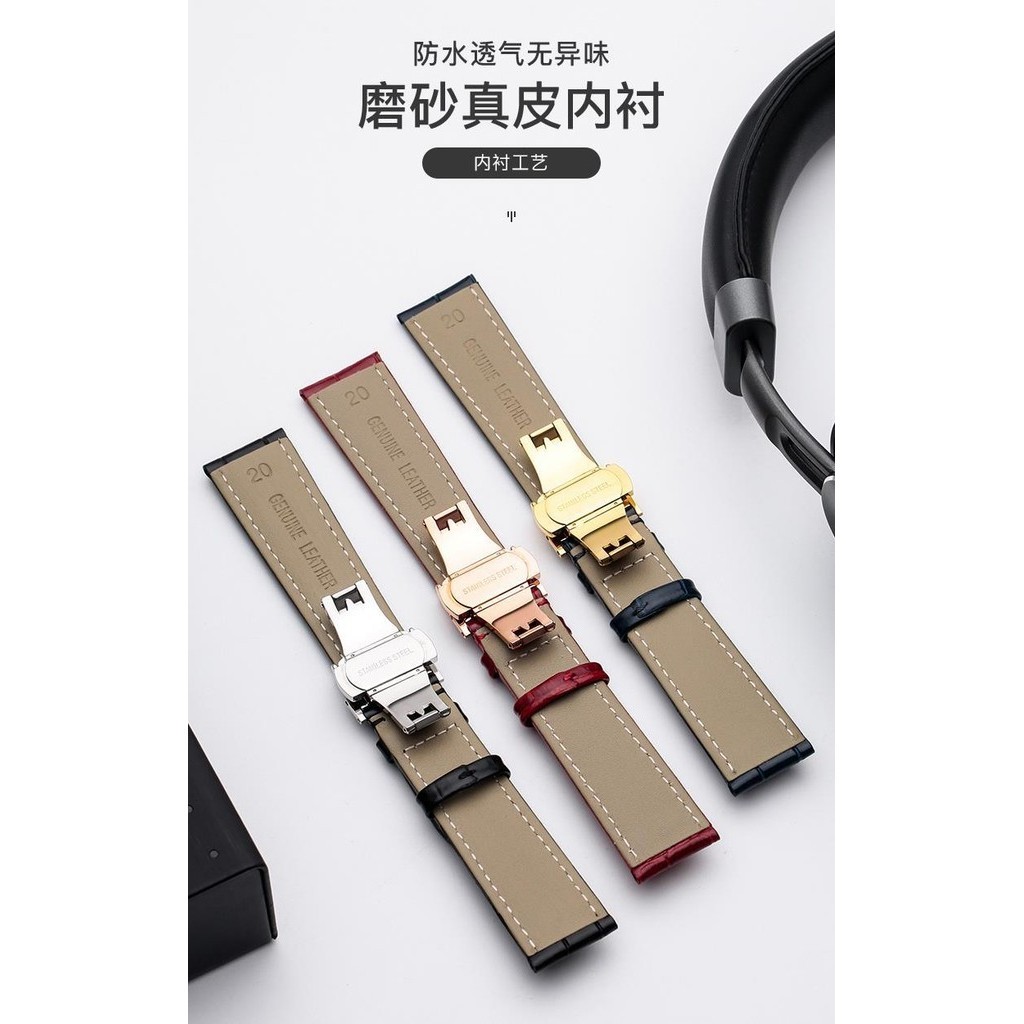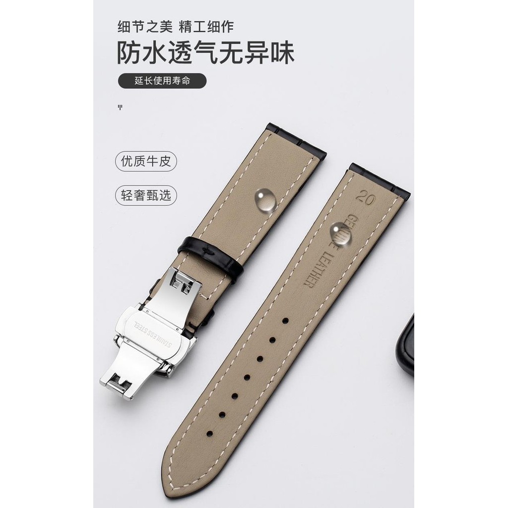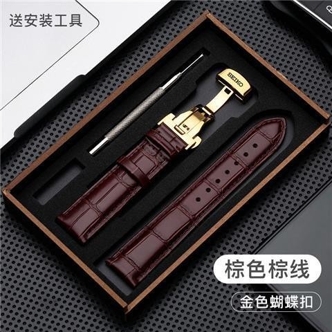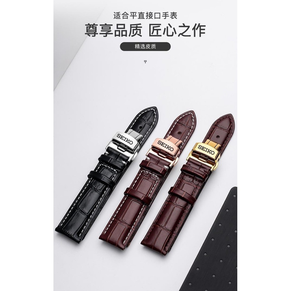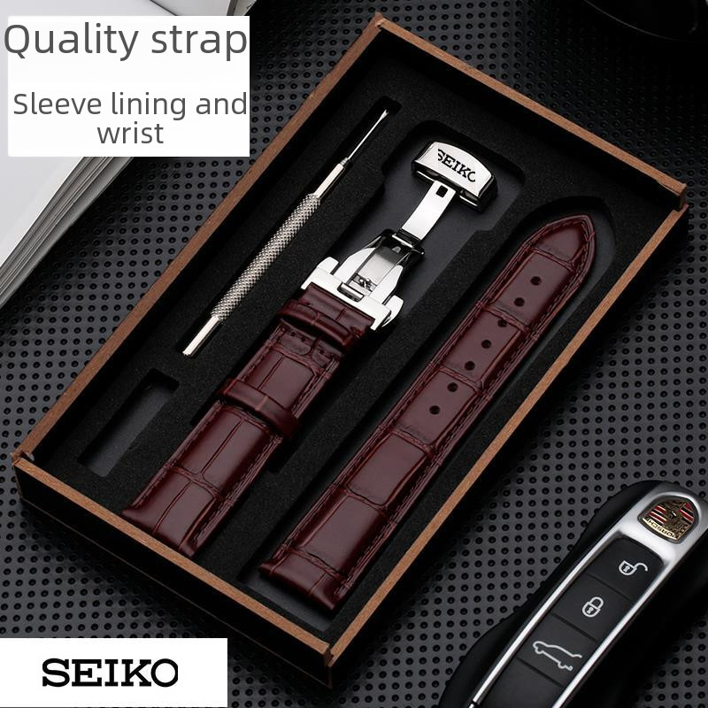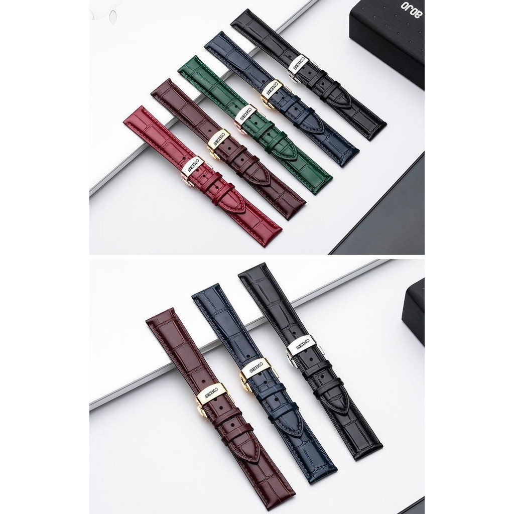 Fine สายนาฬิกา SEIKO Green Water Ghost สายกีฬาหนังแท ้ First Layer Cowhide ผีเสื ้ อหัวเข ็ มขัดสายนาฬิกา 18/20/22/23/24mm