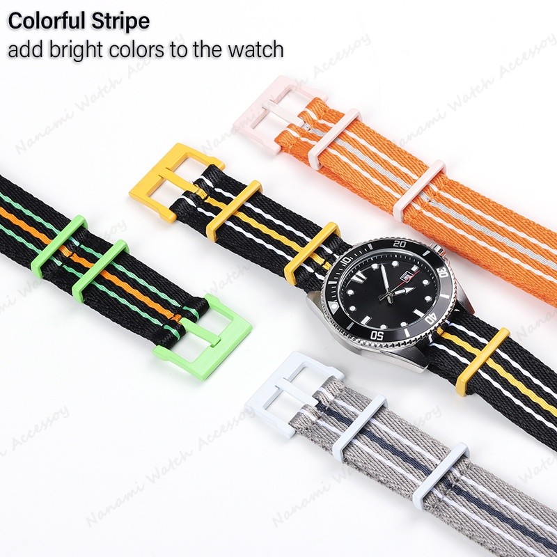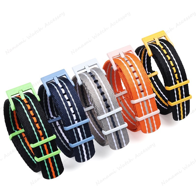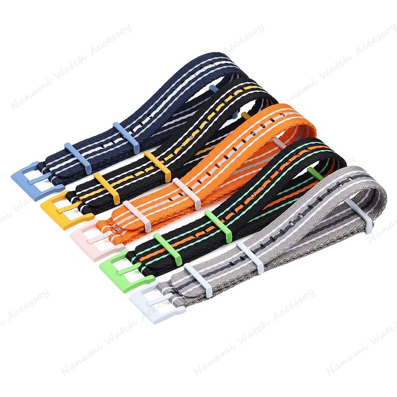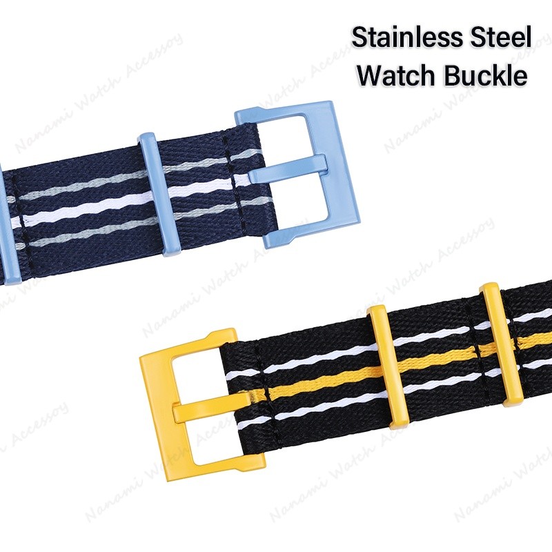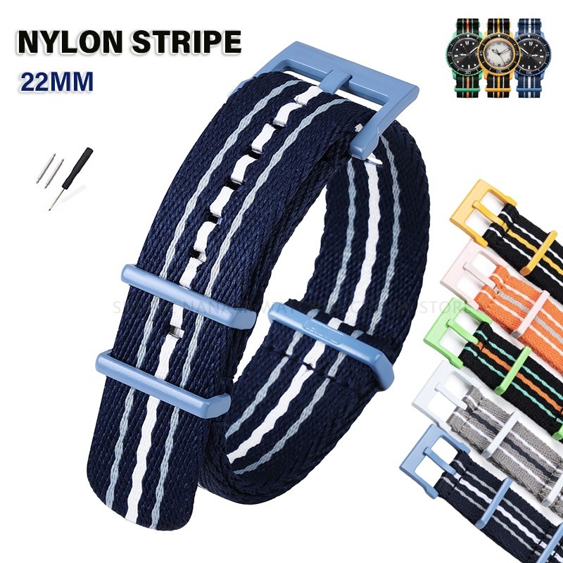 22mm NATO Nylon Stripe สายนาฬิกา One Piece Loop Zulu Watchband for Swatch X Blancpain ถักผ้าใบผู้ชายผู้หญิงสร้อยข้อมือกีฬา Wristbelt