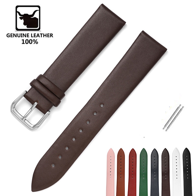 สายนาฬิกาข้อมือ หนังวัวแท้ แบบนิ่ม แบบบาง ขนาด 8 มม. 10 มม. 12 มม. 14 มม. 16 มม. 18 มม. 20 มม. 22 มม. สําหรับผู้หญิง และผู้ชาย