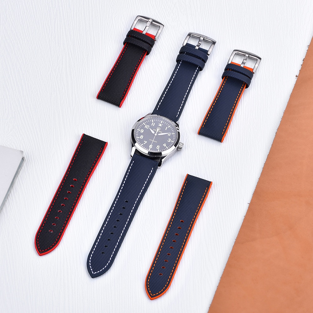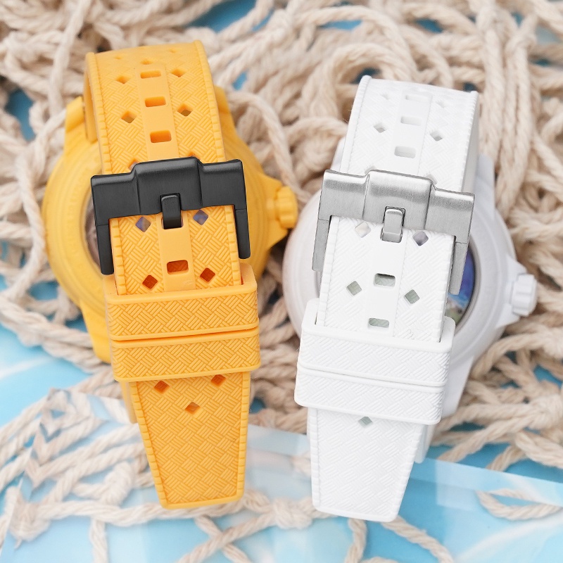 สายนาฬิกาข้อมือยาง 22 มม. หัวเข็มขัดสีดํา ดัดแปลง อุปกรณ์เสริม สําหรับนาฬิกาข้อมือ
