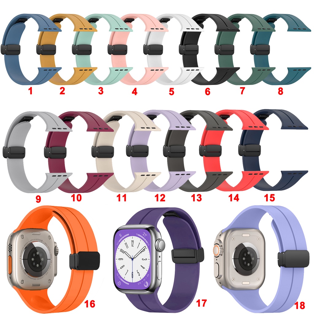สายนาฬิกาข้อมือซิลิโคน หัวเข็มขัดแม่เหล็ก สําหรับ Apple Smartwatch Series 8 7 SE 6 5 4 iWatch Ultra 49 มม. 45 41 44 42 40 38