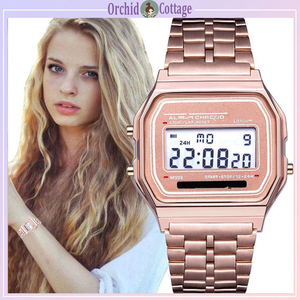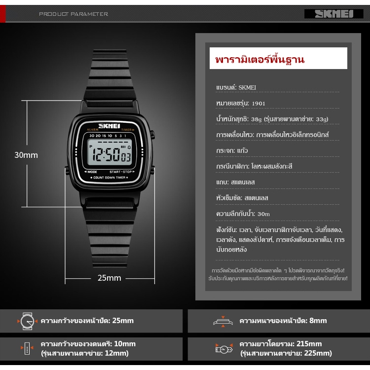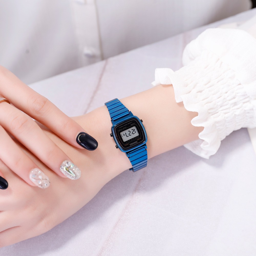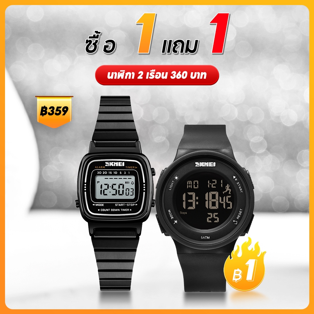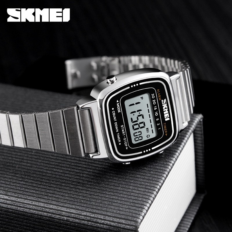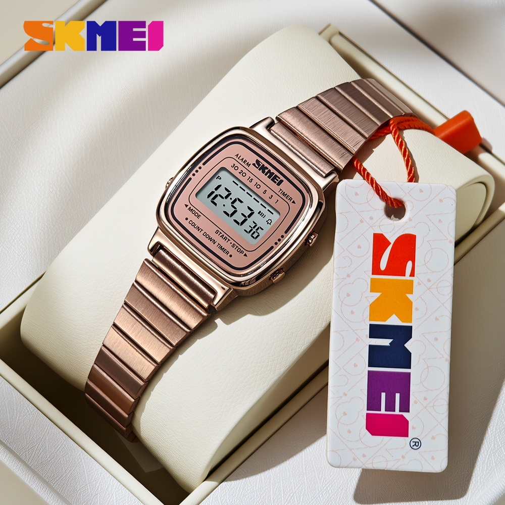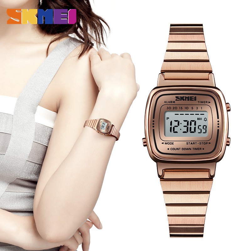 【ซื้อ 1 แถม 1】สุขสันต์วันสงกรานต์ SKMEI นาฬิกากันน้ำ นาฬิกา นาฬิกาข้อมือผู้หญิง แบบกันน้ำ นาฬิกาข้อมือดิจิทัล LED สายสเตนเลส(Updated version)นาฬิกาข้อมือผู้หญิง