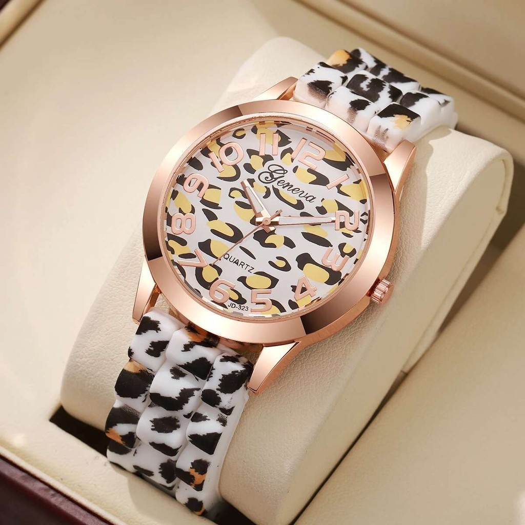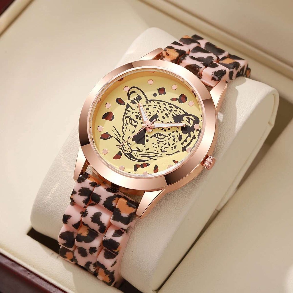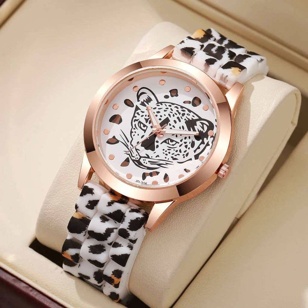 1ชิ้นซิลิโคนวงผู้หญิงนาฬิกาสุภาพสตรีแฟชั่นสบายๆควอตซ์เสือดาวพิมพ์นาฬิกาข้อมือ (ไม่มีกล่อง)