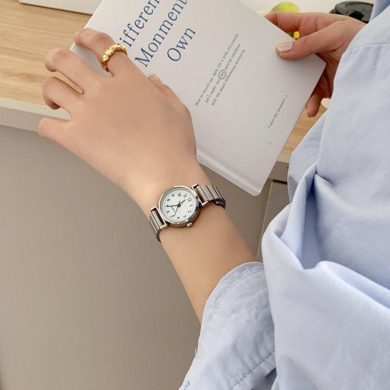 [จัดส่งในกทม] 2024 นาฬิกาแฟชั่นใหม่สำหรับผู้หญิง นาฬิกาควอตซ์ลำลอง สายโลหะสไตล์เรโทร นาฬิกาผู้หญิง