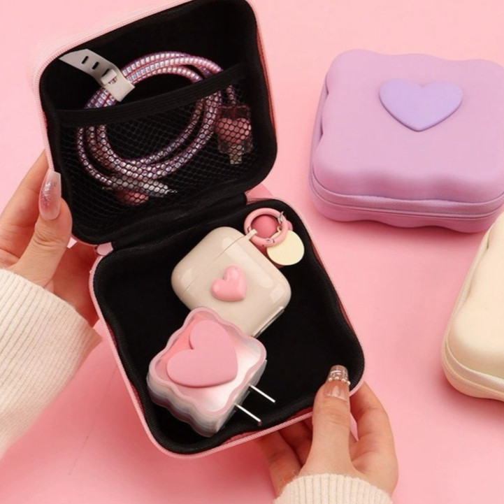 (มีส่งด่วน) tokyosellected(T2347) กระเป๋าจัดระเบียบอเนกประสงค์หูฟัง สายชาร์จ ลายหัวใจ เก็บอุปกรณ์ที่ชาร์จแบต