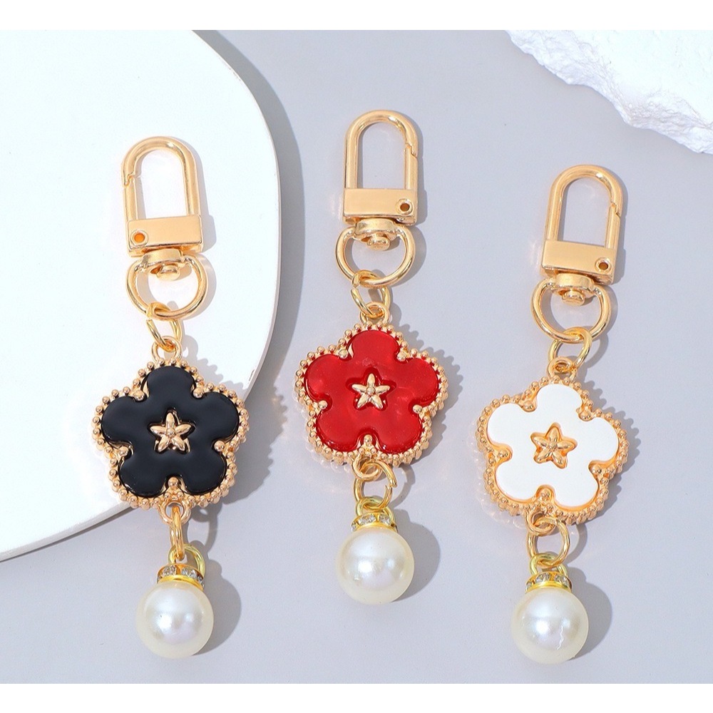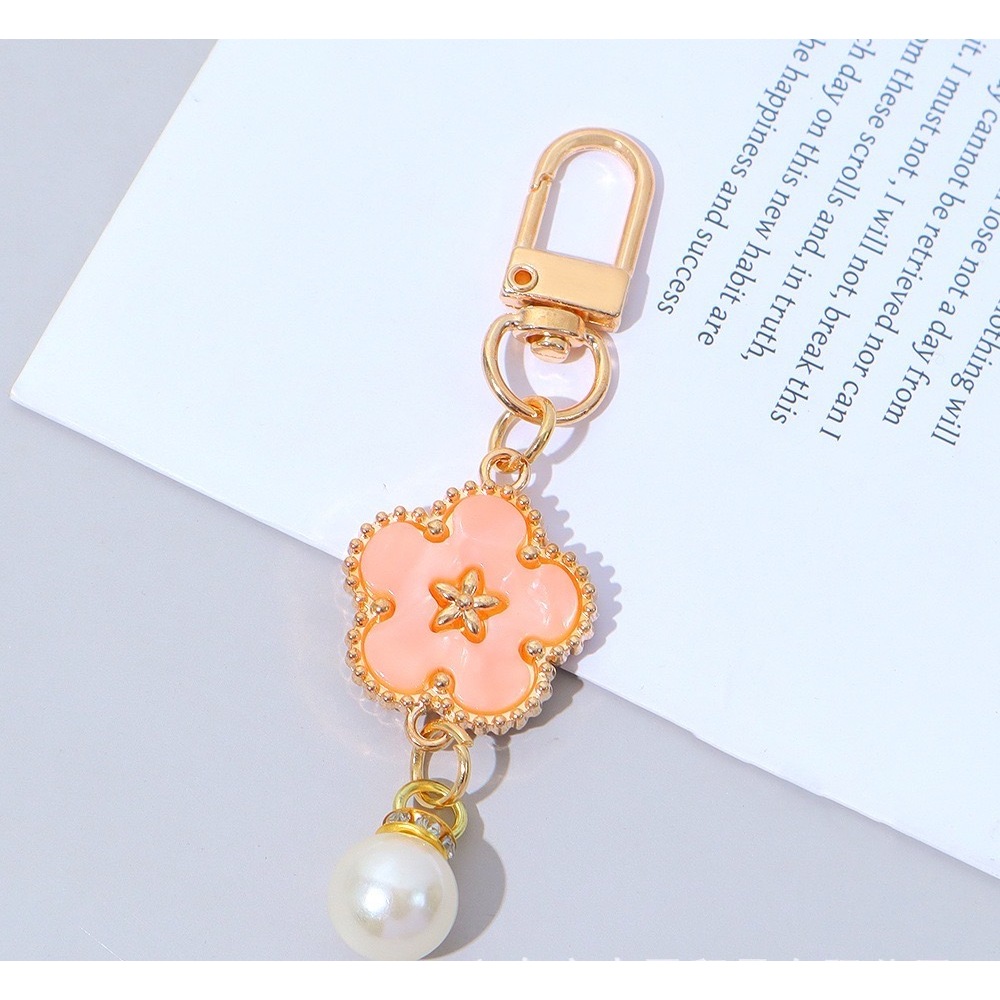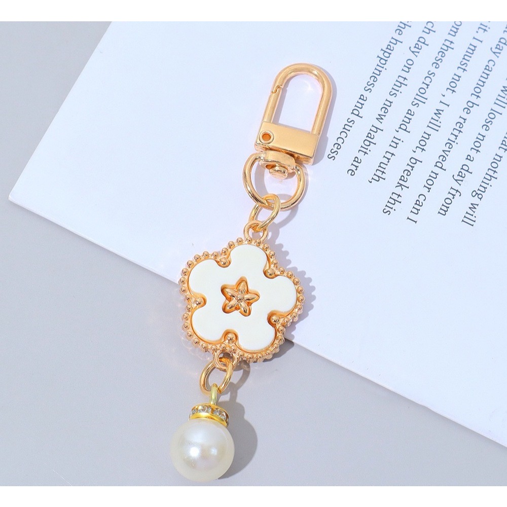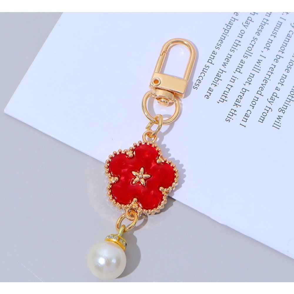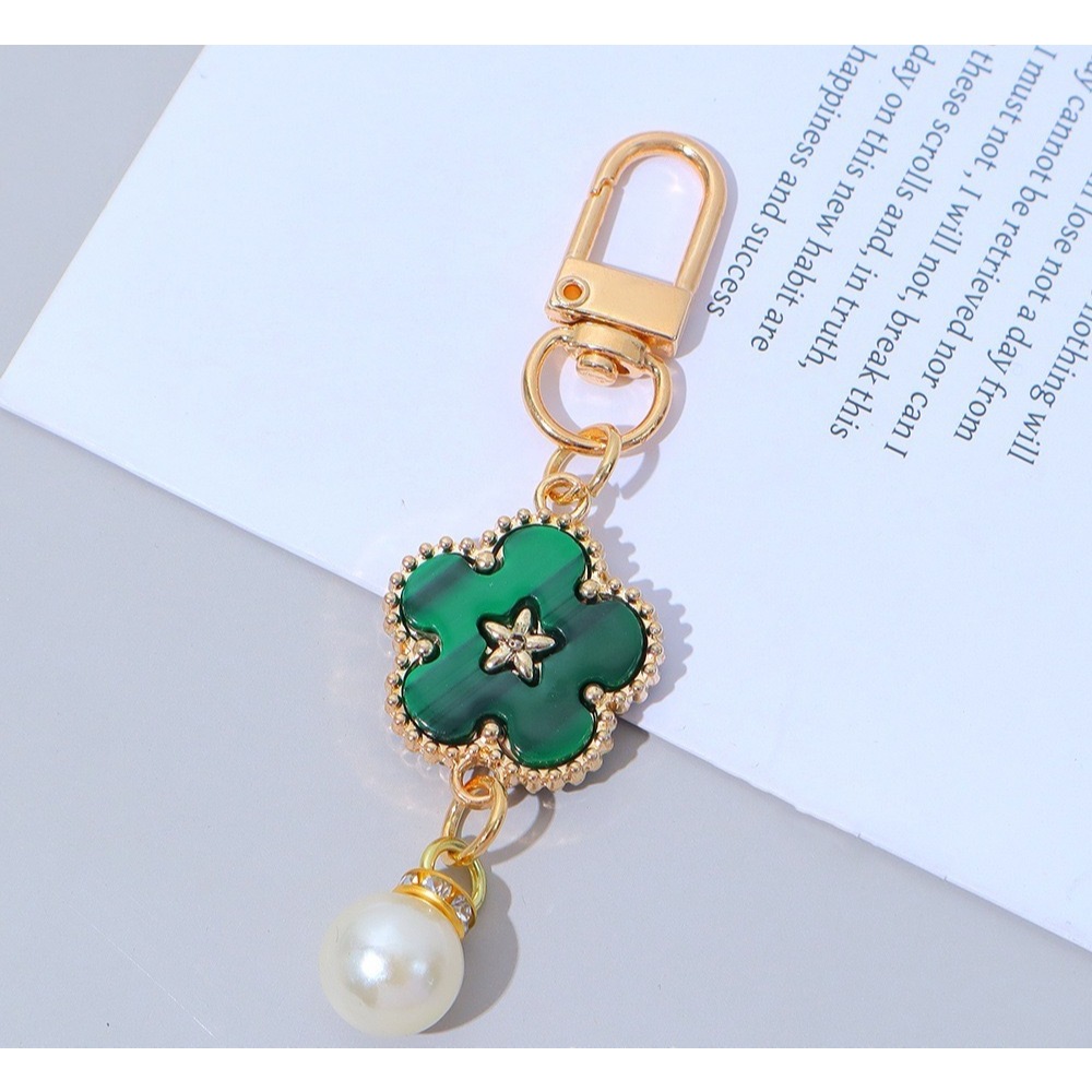 (B-2524)🔥พวงกุญแจห้อยกระเป๋าจี้โคลเวอร์ห้าแฉก สร้างสรรค์ พวงกุญแจลูกปัดไข่ มุก พวงกุญแจ ห้อยกระเป๋าโคลเวอร์ห้าแฉก
