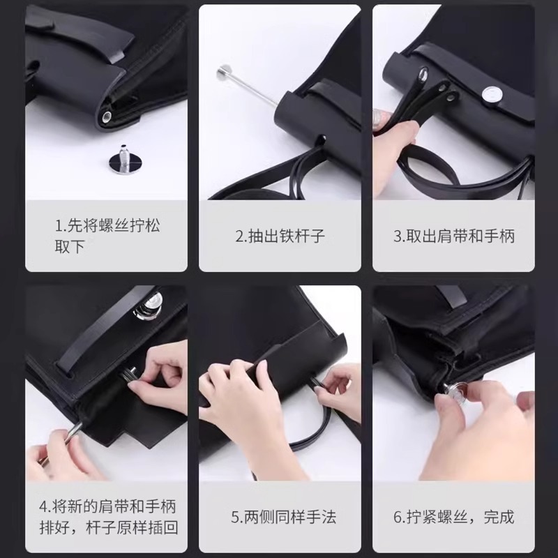 กระเป๋าถือหนังขนาด 30/40/60 มม. มาพร้อมหัวเข็มขัดโลหะสำหรับเปลี่ยนสายคล้องไหล่