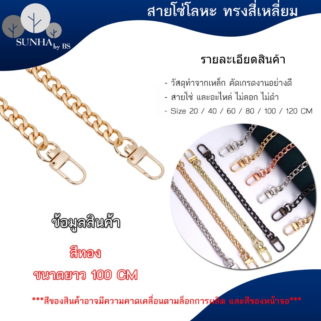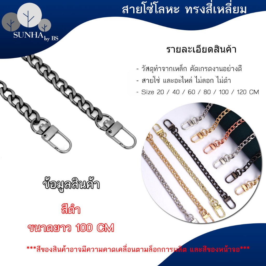 สายกระเป๋า สายโซ่พร้อมข้อต่อ ขนาด 20 – 120 ซม. สีทอง สีดำ สีเงิน