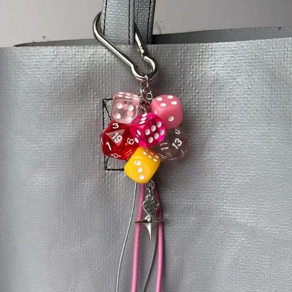 โชคชะตา ลูกเต๋าพวงกุญแจจี้หัวเข็มขัดสากลย้อนยุคสไตล์ใหม่กระเป๋าแขวนบุคลิกภาพอินเทรนด์สีจับคู่อุปกรณ์เสริมจี้