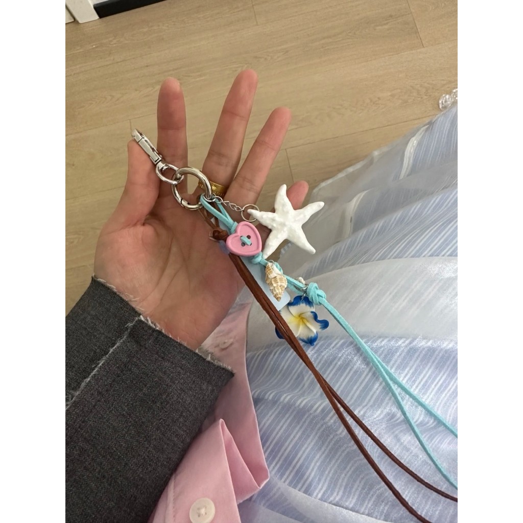เกาะเดิมสไตล์แฮนด์เมดปลาดาวดอกไม้จี้พวงกุญแจกระเป๋าจี้โซ่โทรศัพท์มือถือ