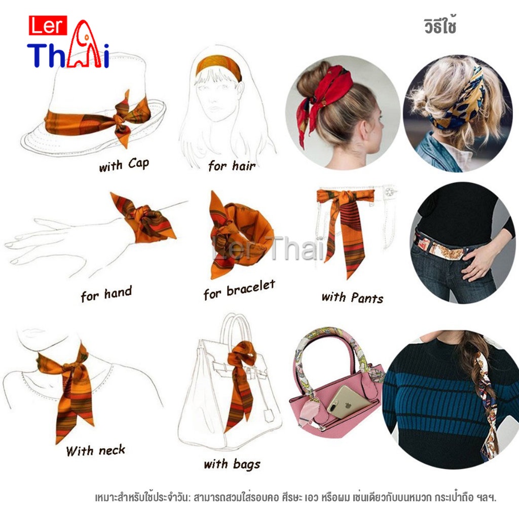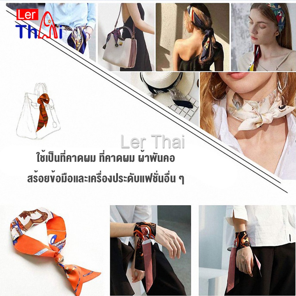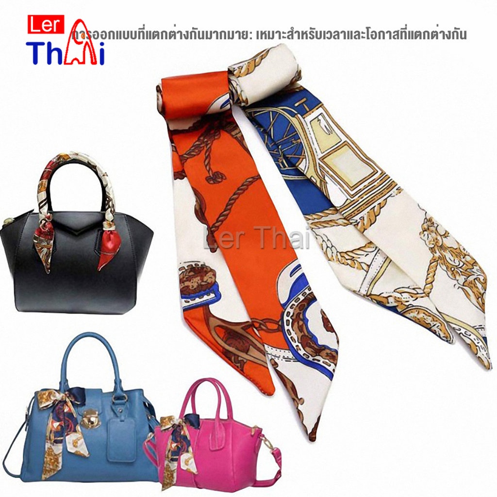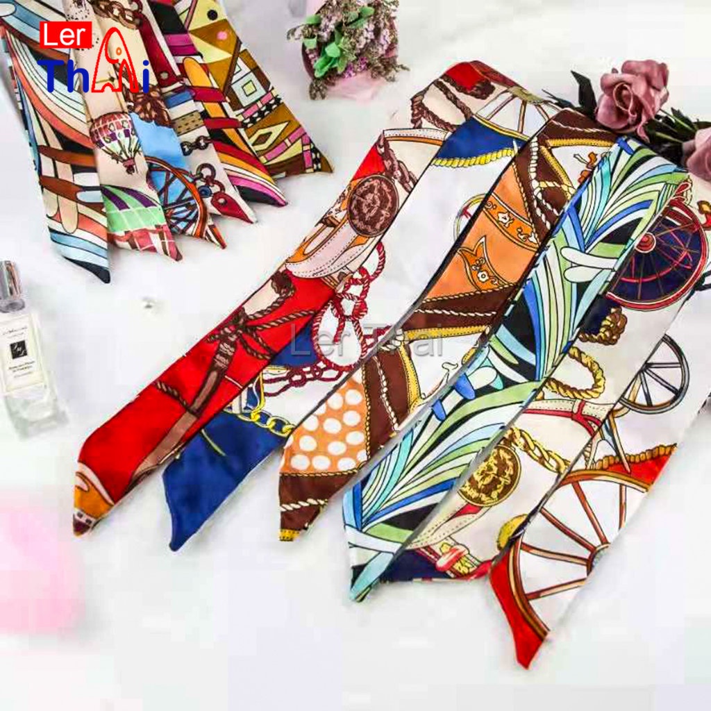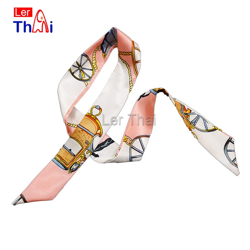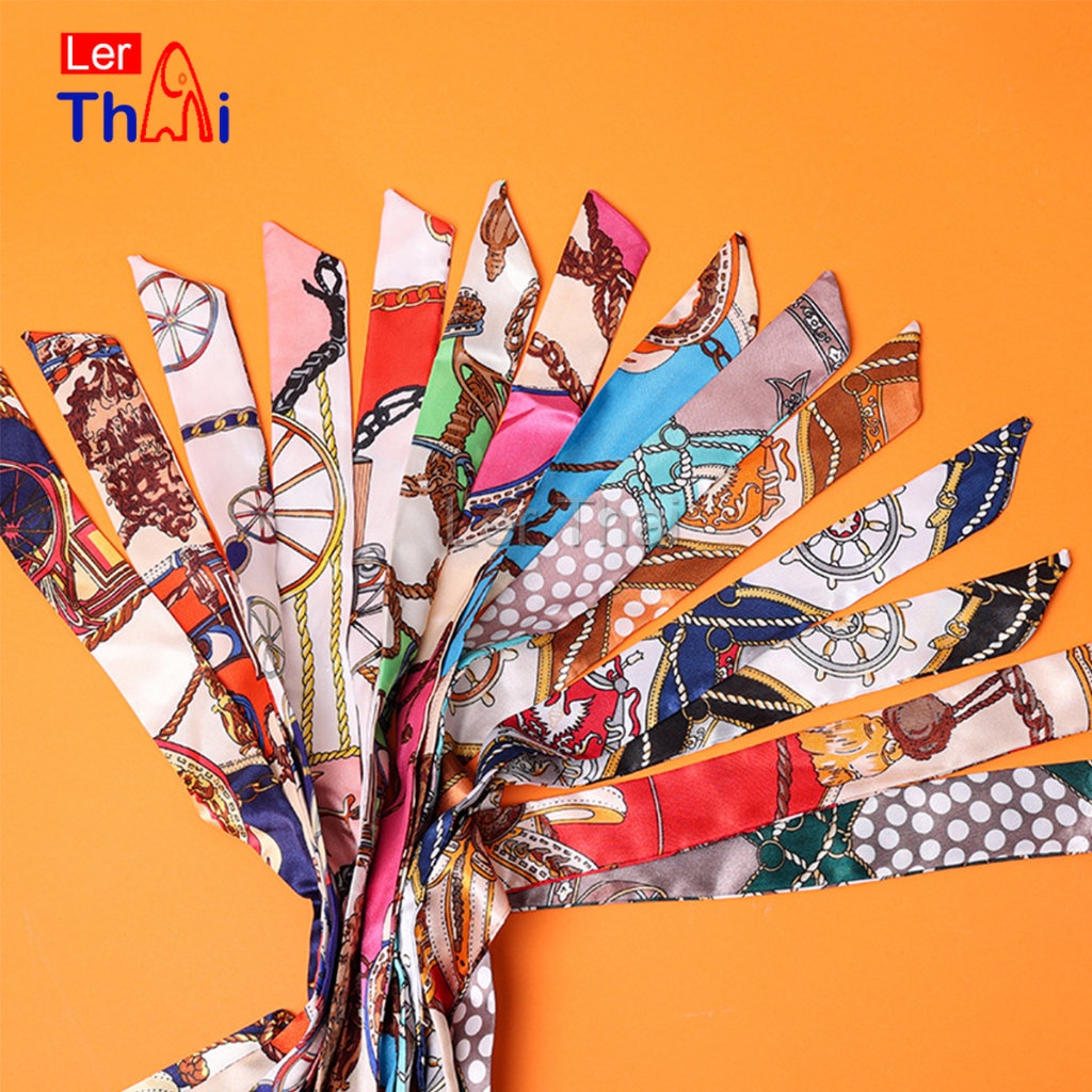 LerThai ริบบิ้นผูกกระเป๋า พิมพ์ลาย ขนาดเล็ก สําหรับผู้หญิง ขนาด 85×4 ซม. Silk scarf