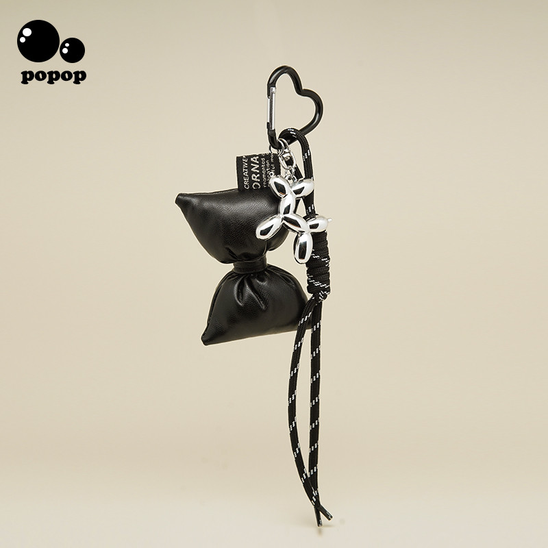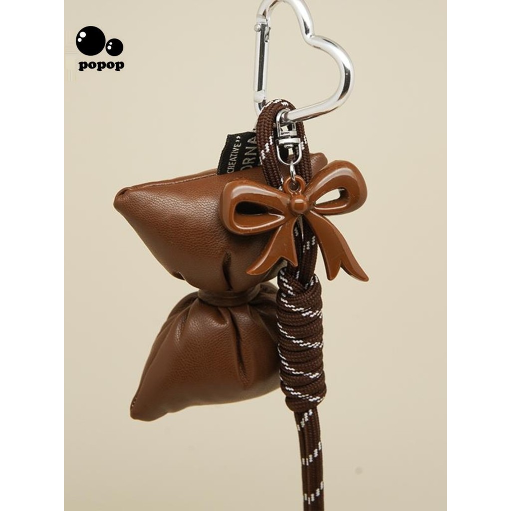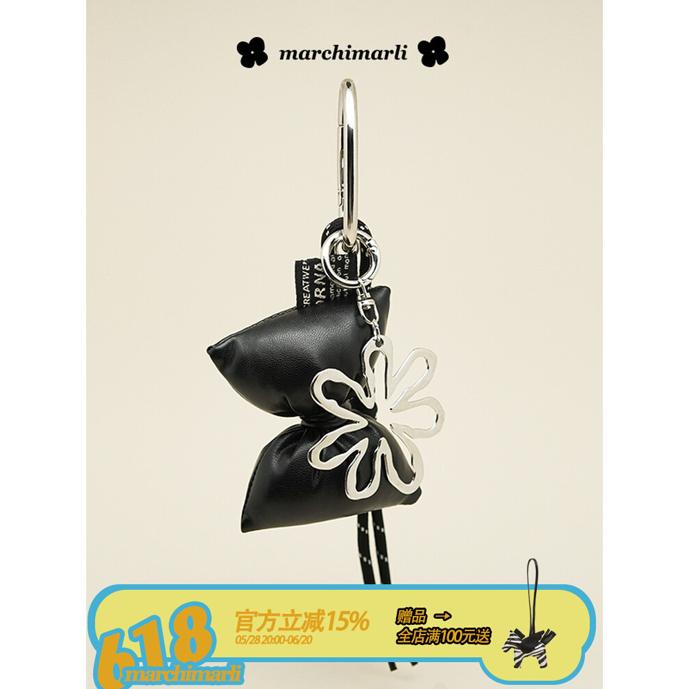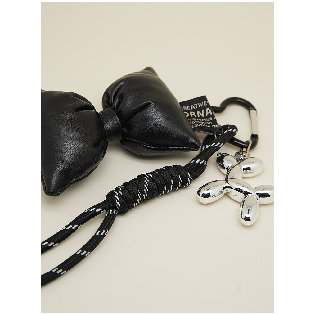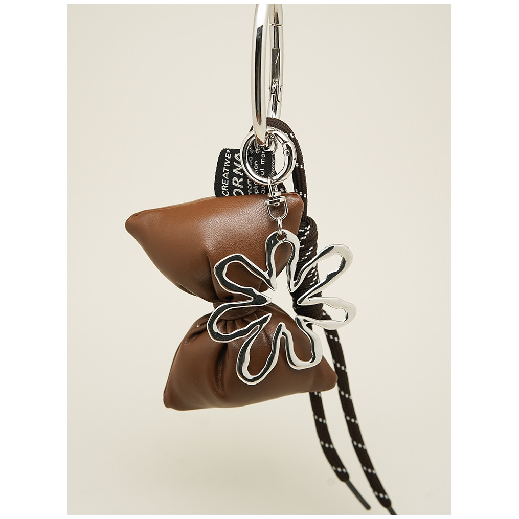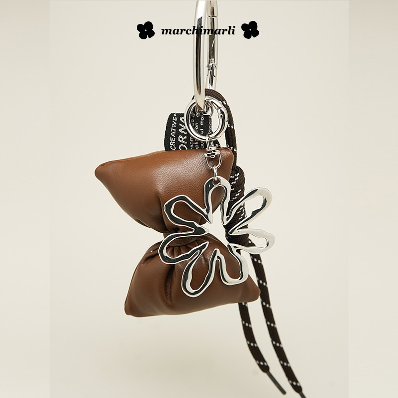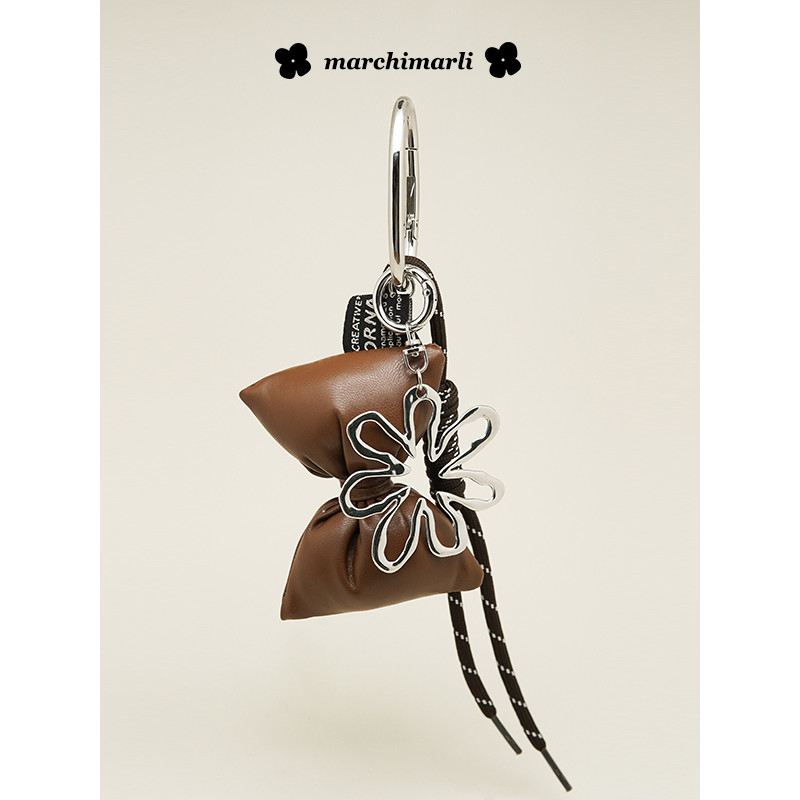 Niche Leather Bow Silver Daisy Bag Pendant Keychain
