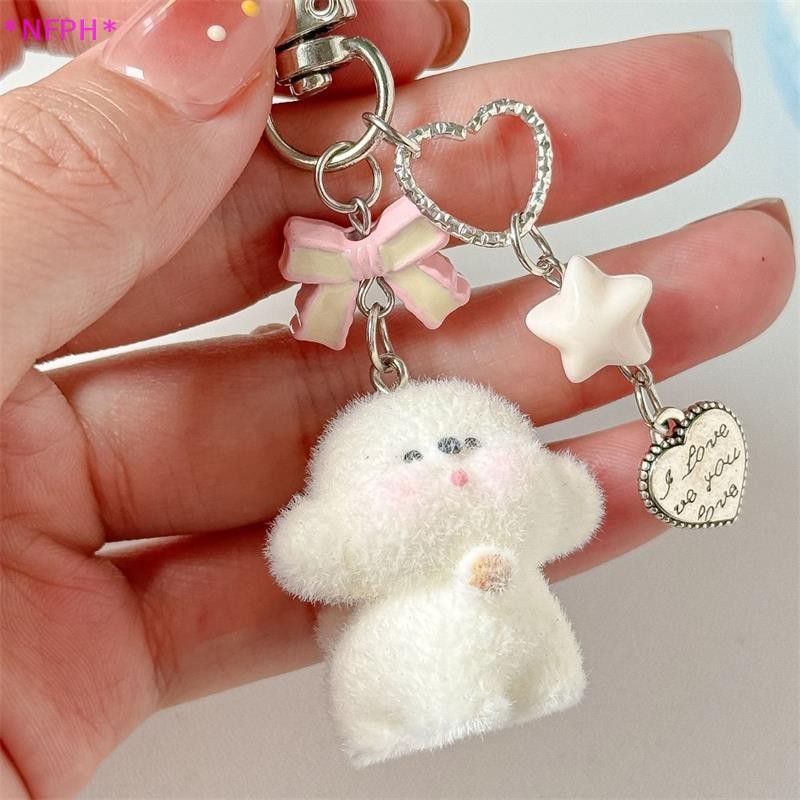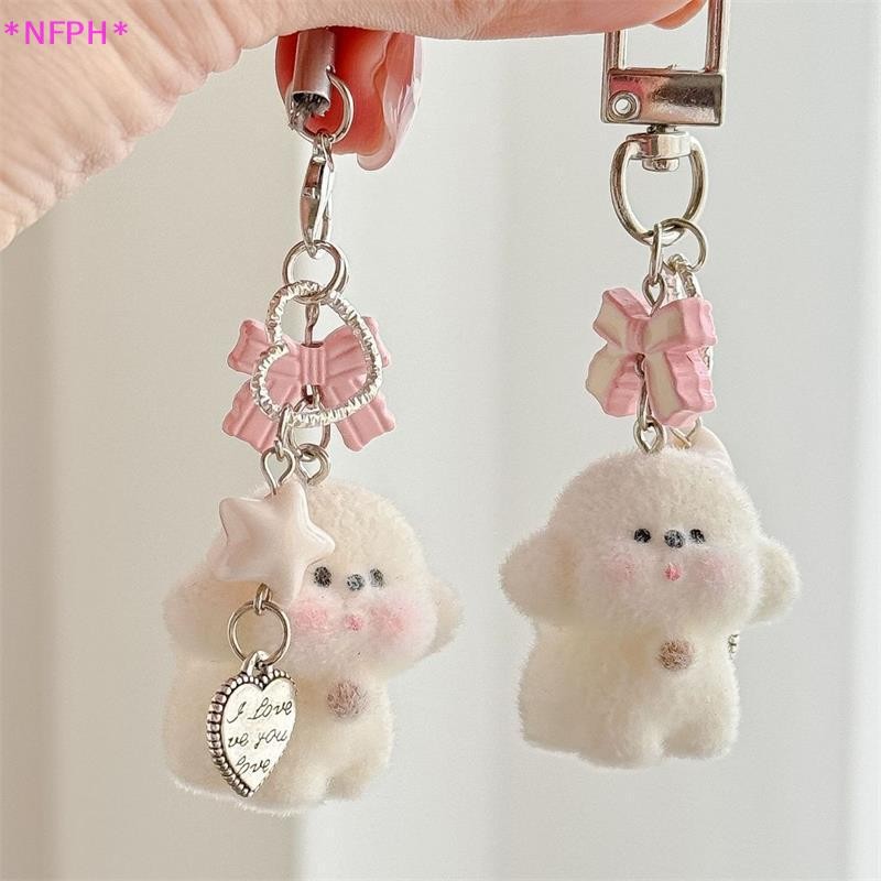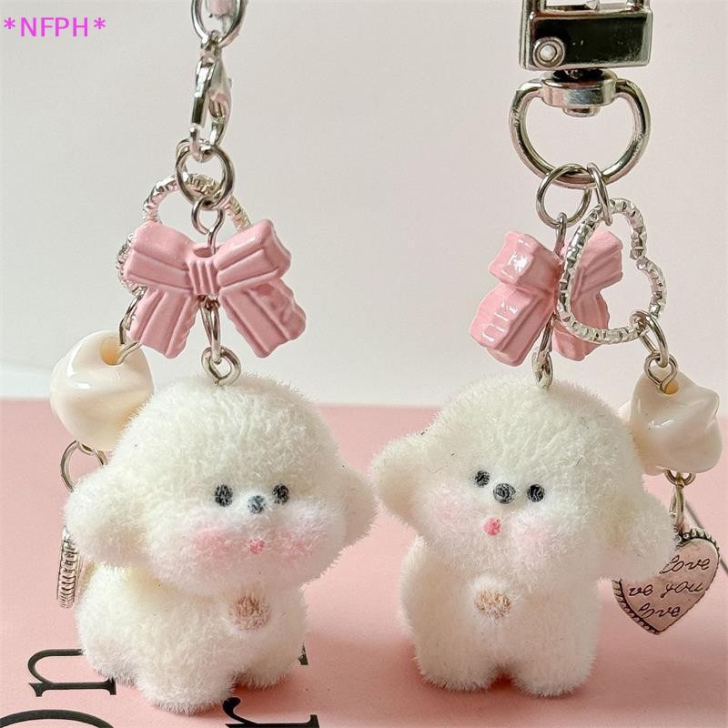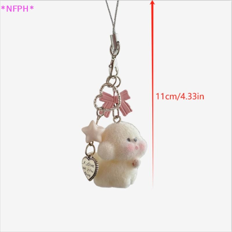 NFPH> การ์ตูนน่ารักสัตว์น่ารัก แห่กัน หมีลูกสุนัขโบว์ลูกปัดพวงกุญแจจี้กระเป๋าเป้สะพายหลังเครื่องประดับกระเป๋าเชือกเส้นเล็กโทรศัพท์โซ่คู่ของข