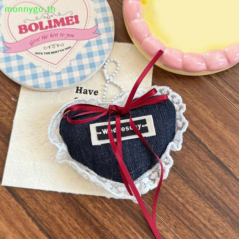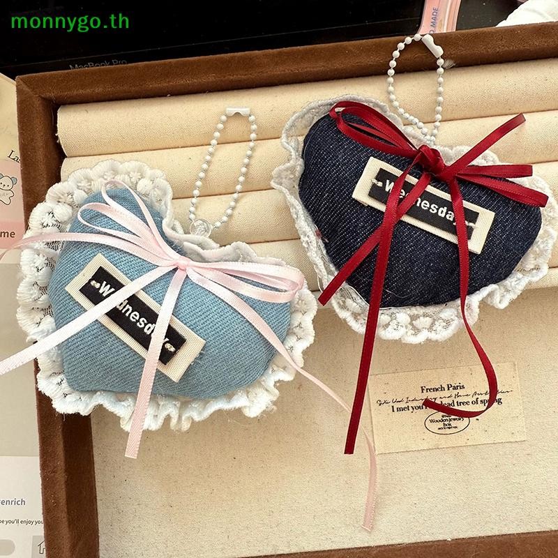 Monnygo Sweet Denim Love ริบบิ้นพวงกุญแจ Charm พวงกุญแจจี้เครื่องประดับสําหรับสาวผู้หญิงของขวัญกระเป๋าตกแต่ง TH