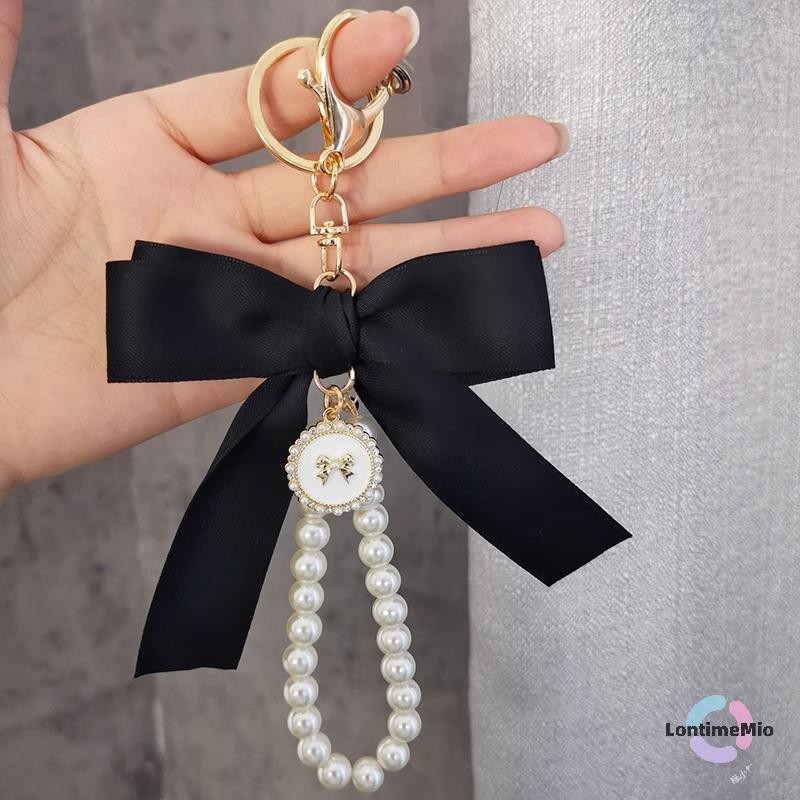 Lontimemio] พวงกุญแจจี้อุปกรณ์เสริม Faux Pearl Bow พวงกุญแจน่ารักลูกปัดสร้อยข้อมือสําหรับกระเป๋ากระเป๋าเป้สะพายหลังรถ Charm ริบบิ้นใหม่