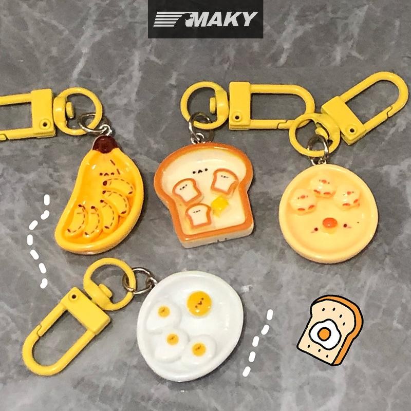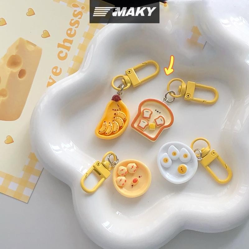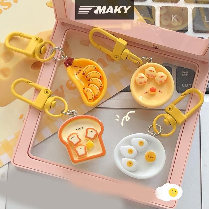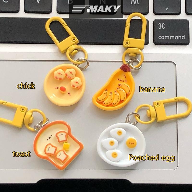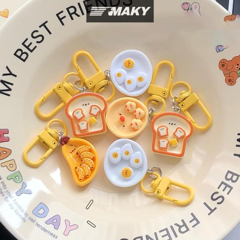 Llph น่ารักการ์ตูนไข่ลวกกล้วยขนมปังปิ้งพวงกุญแจสร้างสรรค์อาหารเช้าอาหารพวงกุญแจกระเป๋าเป้สะพายหลังตกแต่งกระเป๋าจี้ LLP
