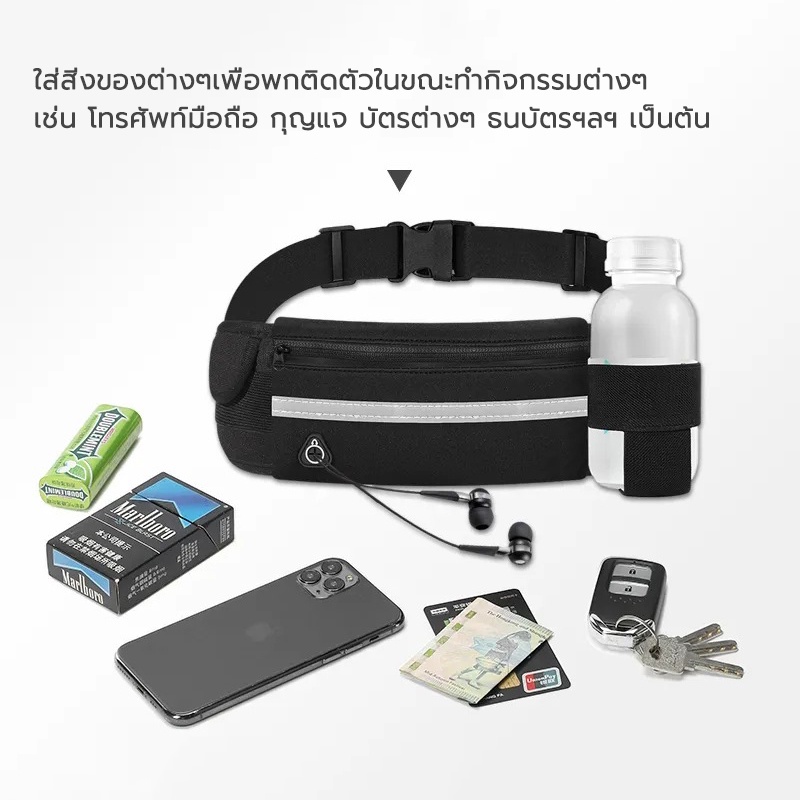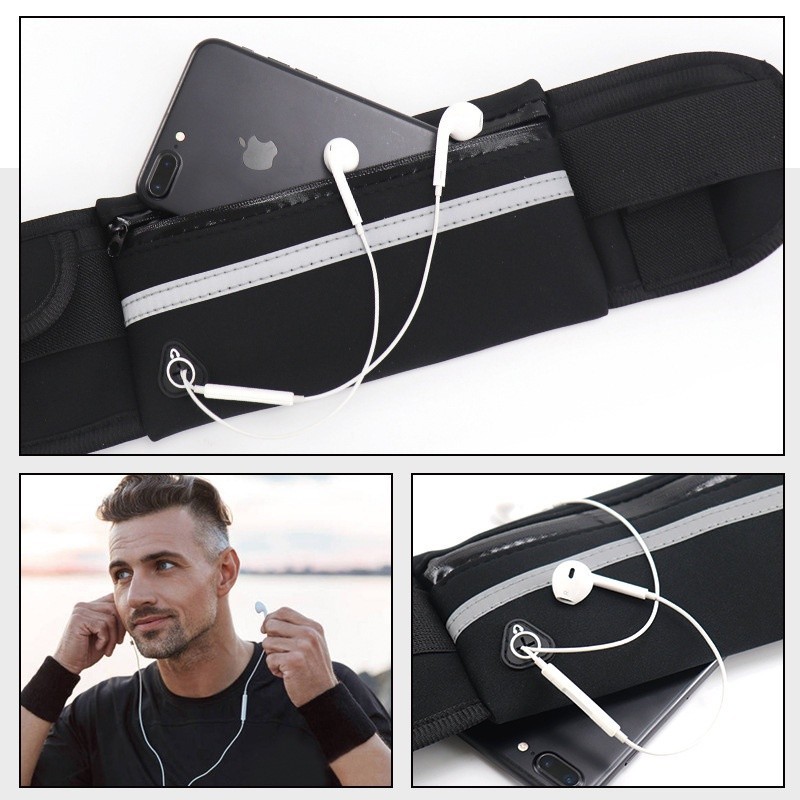 กระเป๋าคาดเอว ใส่ได้ทั้งผู้หญิงผู้ชาย มีรูสายหูฟัง กันน้ำ วิ่งออกกำลังกาย เดิน ปั่น ใส่โทรศัพท์
