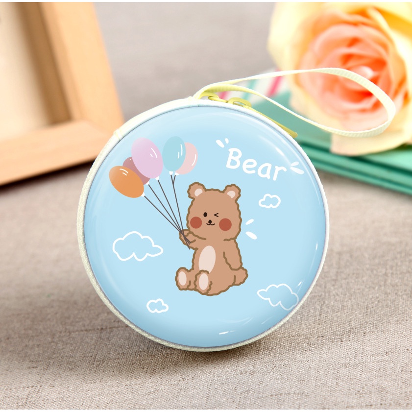 (B-004) กระเป๋ากลมใส่เหรียญ ใส่หูฟัง ของจุกจิก แบบพกพา ลายการ์ตูนหมีอวกาศ ลายคริสต์มาส สีหวาน สดใส น่ารัก เลือกลายได้