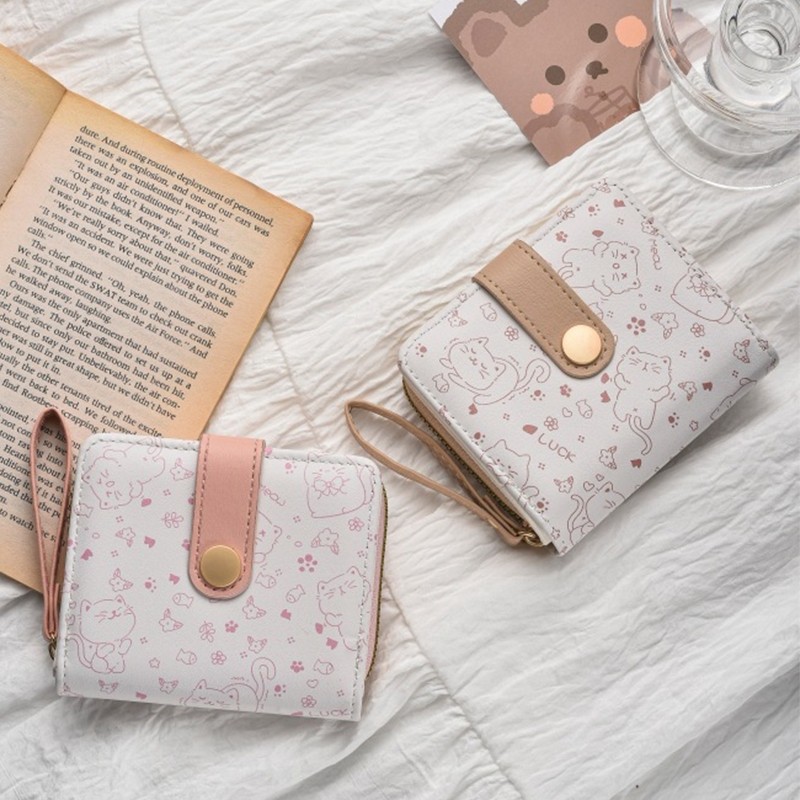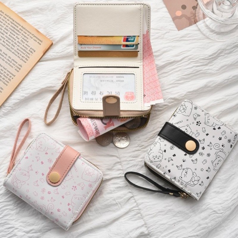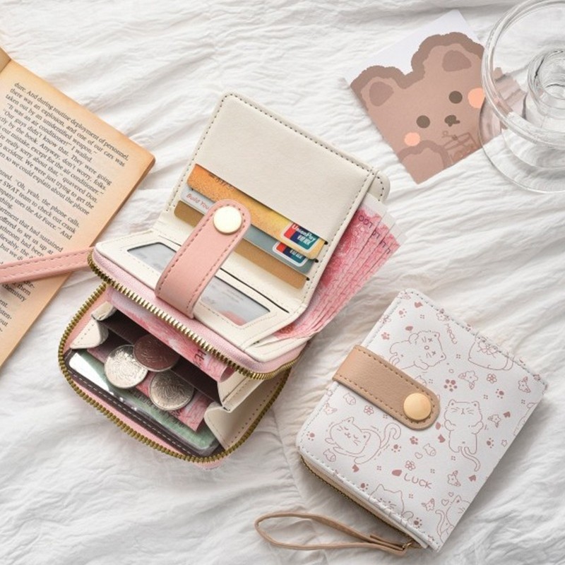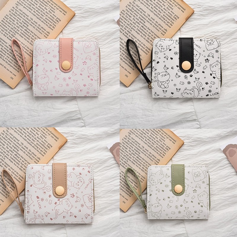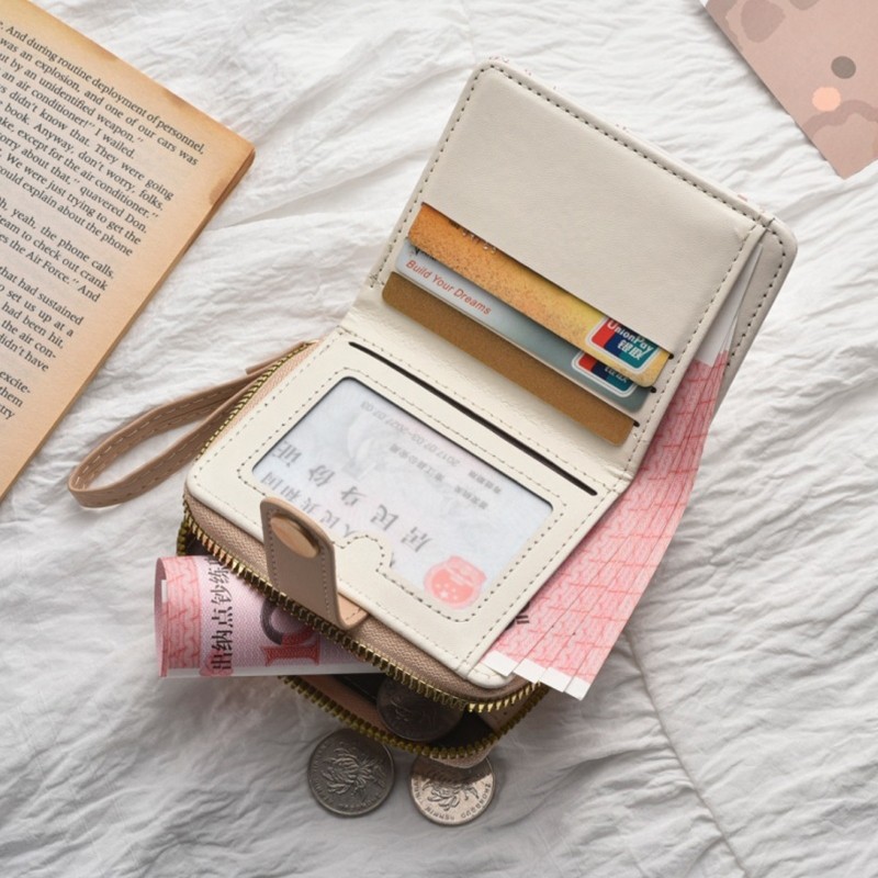 (B-1725)🔥กระเป๋าสตางค์ใบสั้น หนังPu พกพาสะดวก ขนาดเล็กแบบพกพา พร้อมช่องใส่บัตร สีสดใส แฟชั่นสําหรับสตรี 5สี