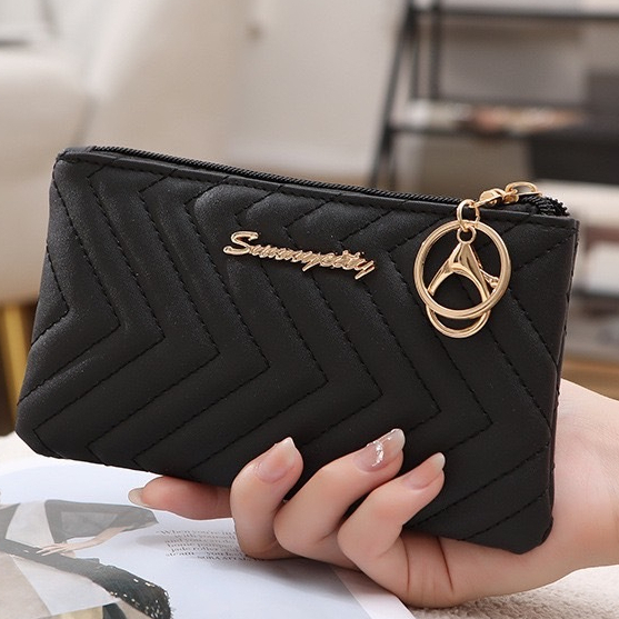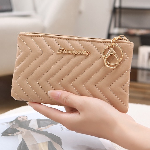 (GC-018)กระเป๋าสตางค์เก็บของ อเนกประสงค์ ใส่โทรศัพท์ได้ เก็บกุญแจได้ ลายหนังเย็บ โลโก้สีทอง