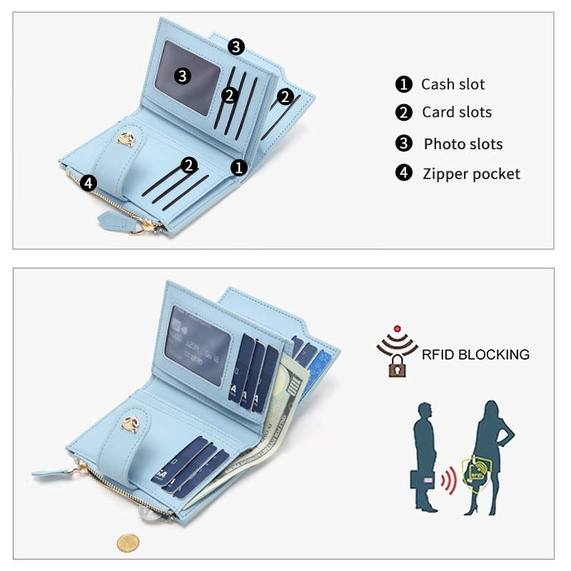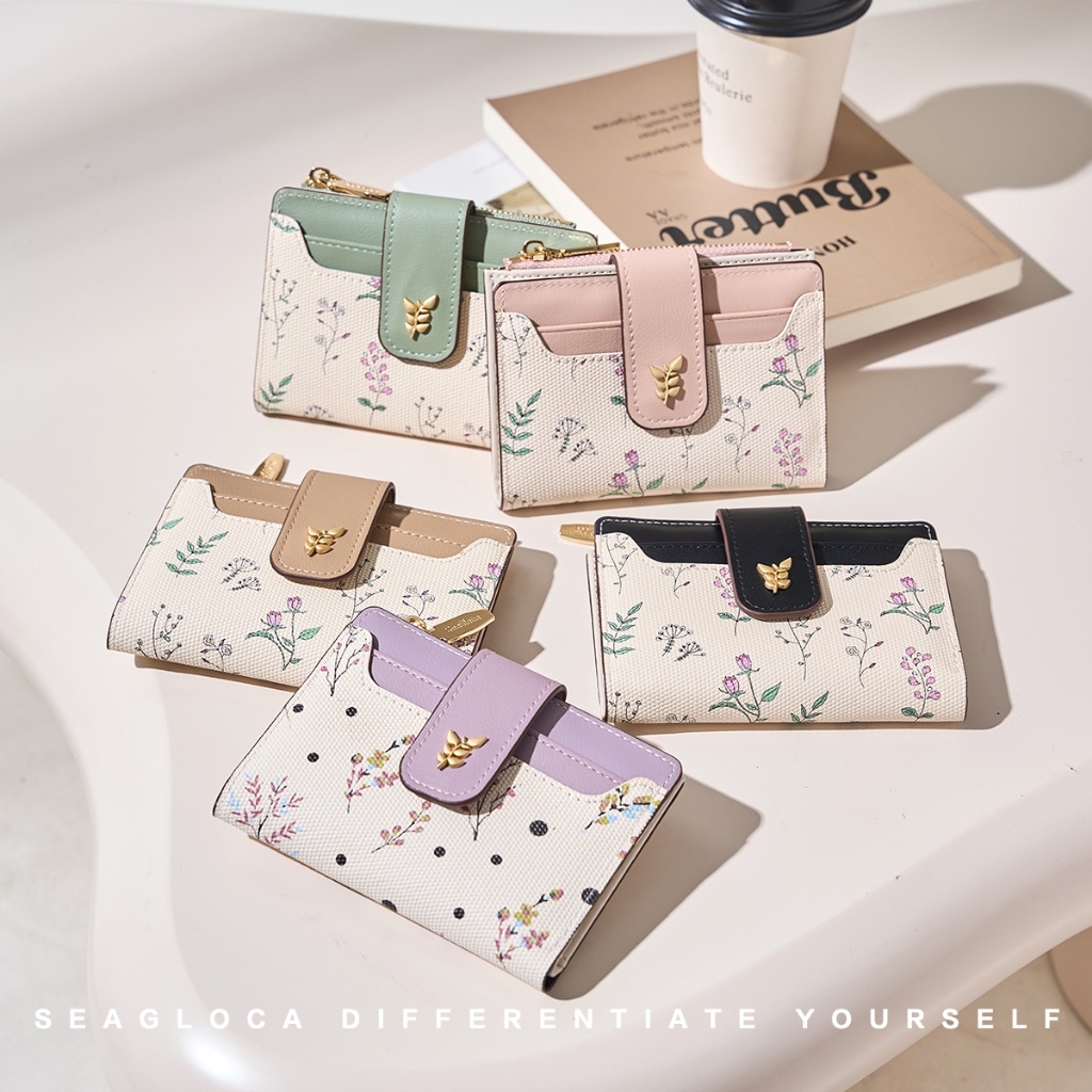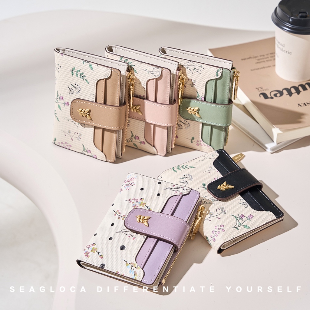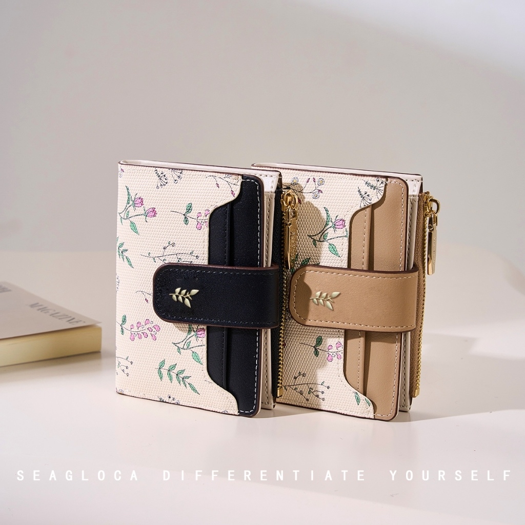 SeaGloca กระเป๋าสตางค์พับสั้นสำหรับผู้หญิง ลายคลาสสิกพร้อมซิป รุ่นล่าสุด 1845
