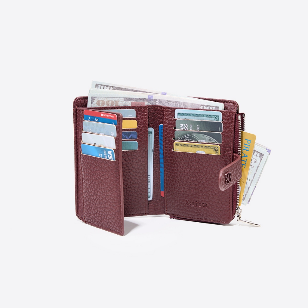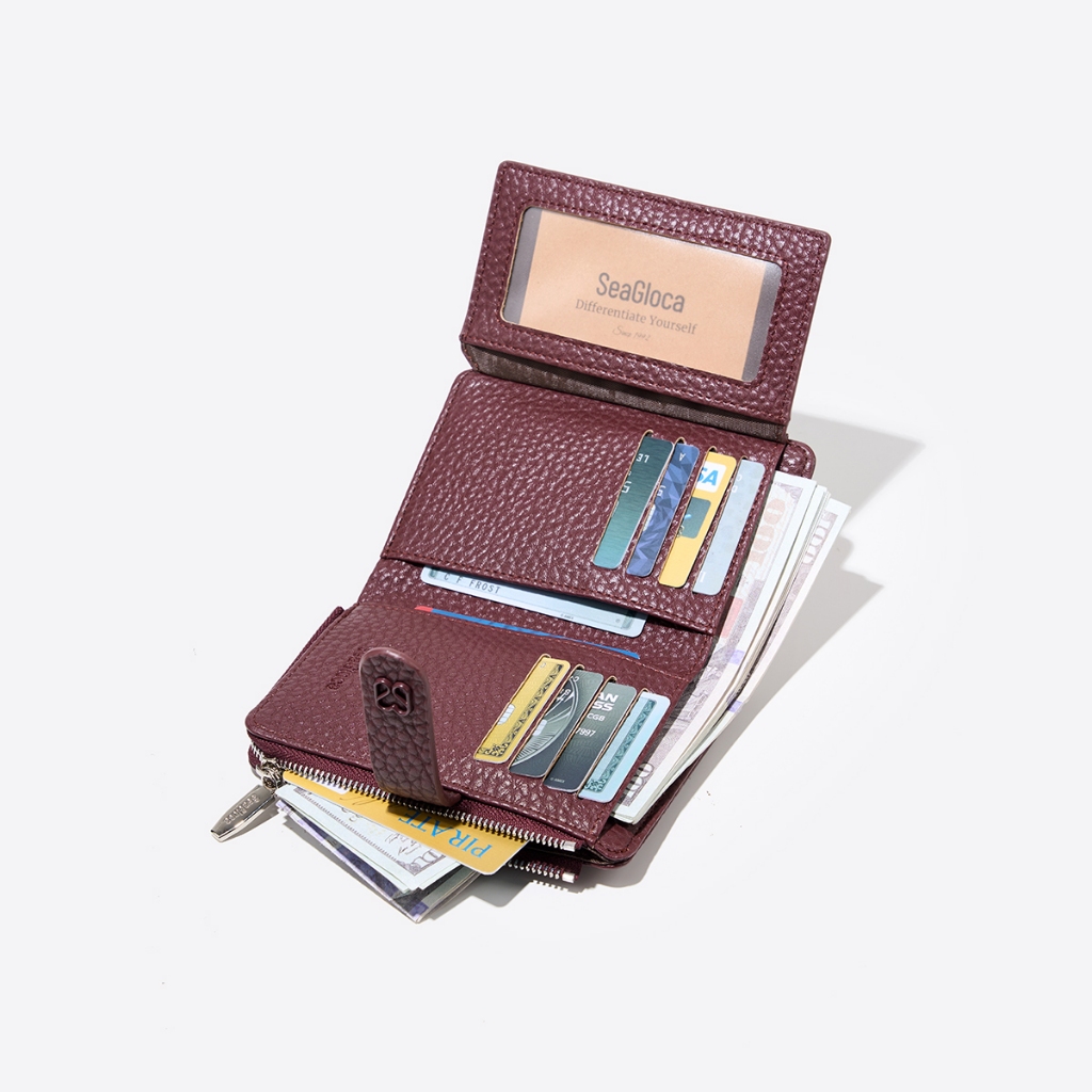 SeaGloca กระเป๋าสตางค์พรีเมียมสำหรับผู้หญิง มีซิปและช่องใส่บัตร 37