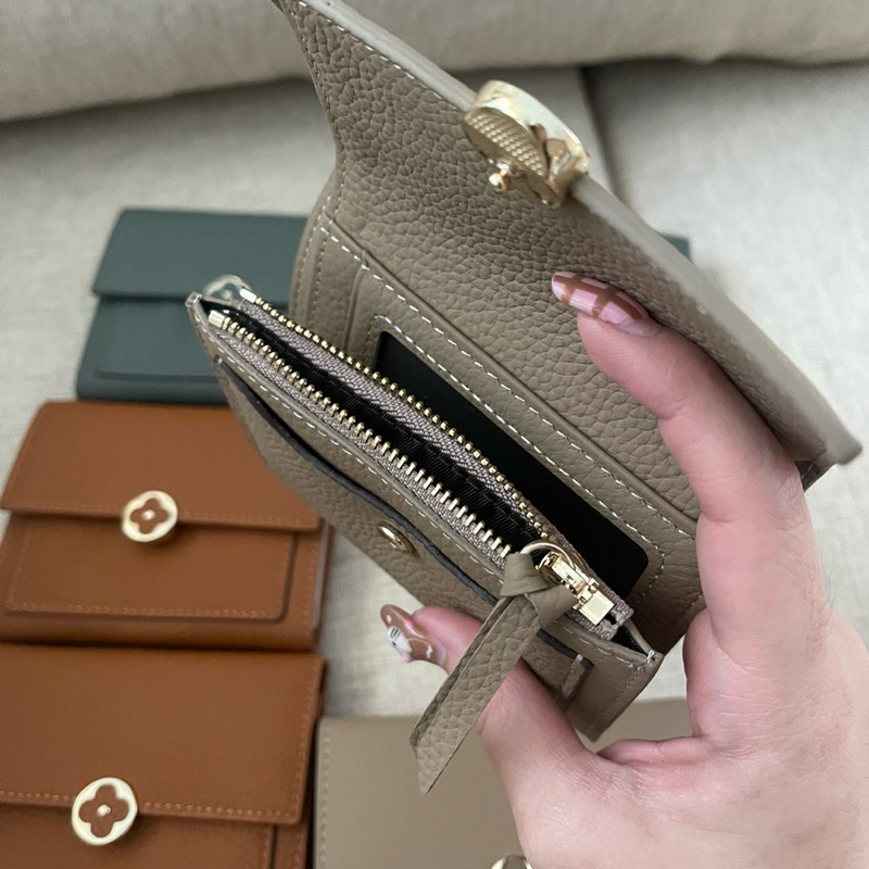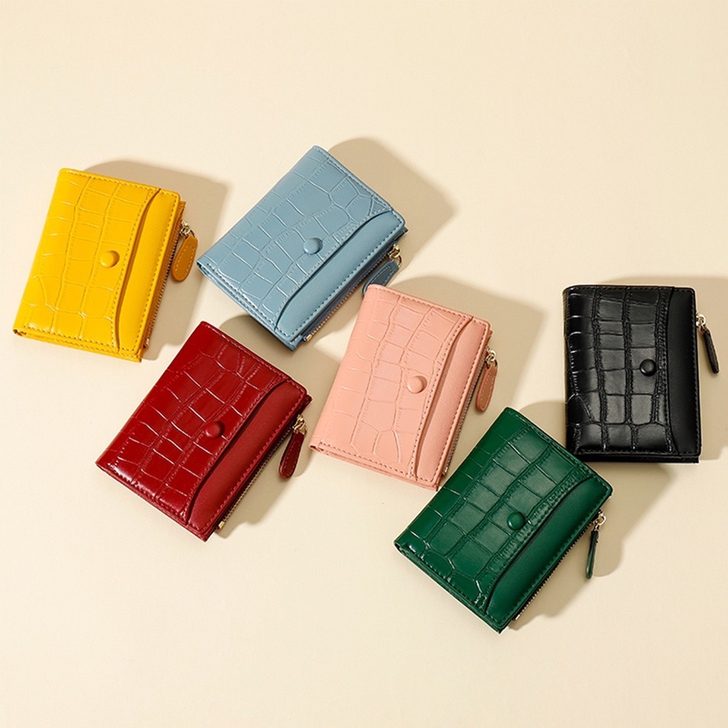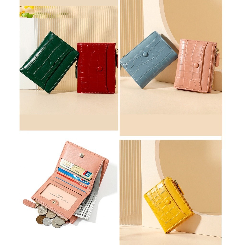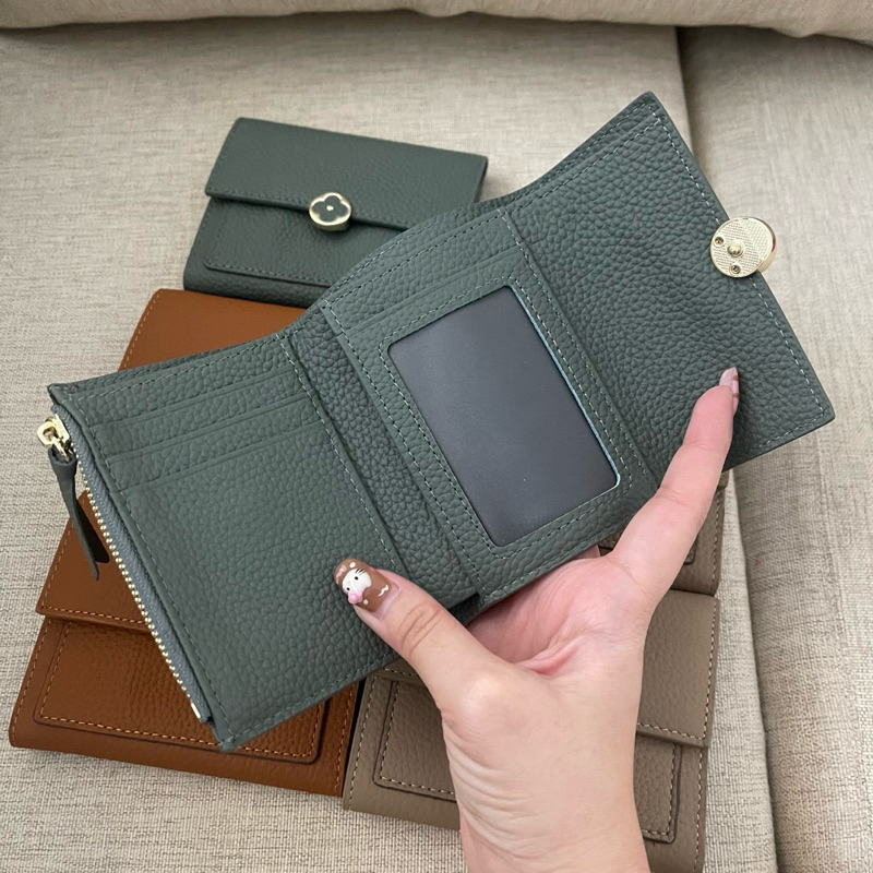 Hot กระเป๋าสตางค์ หนังวัว ขนาดเล็ก สามารถพับได้ แต่งซิป เหมาะกับเป็นของขวัญ สําหรับผู้หญิง
