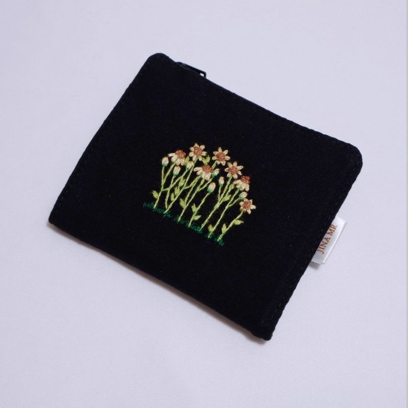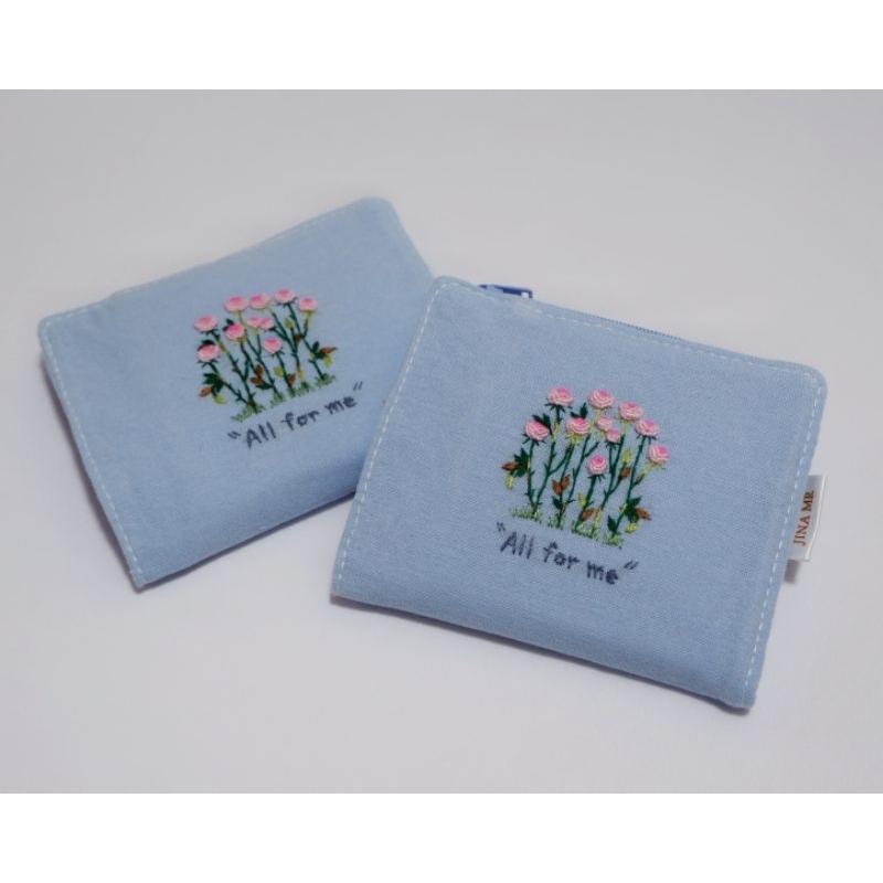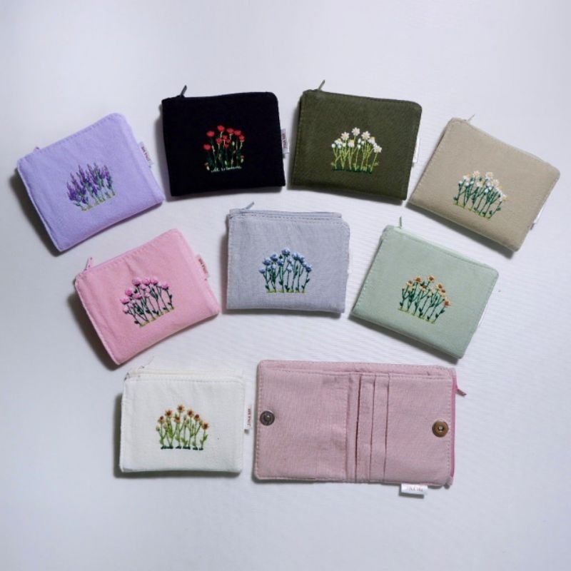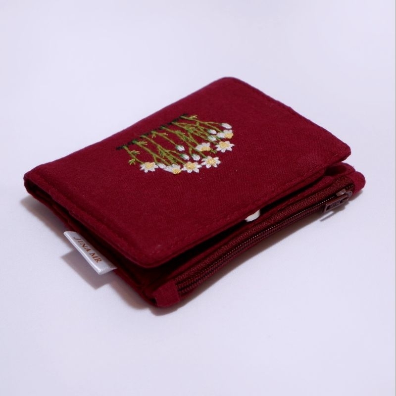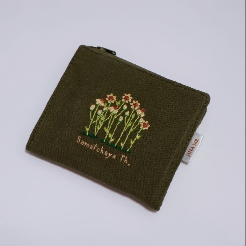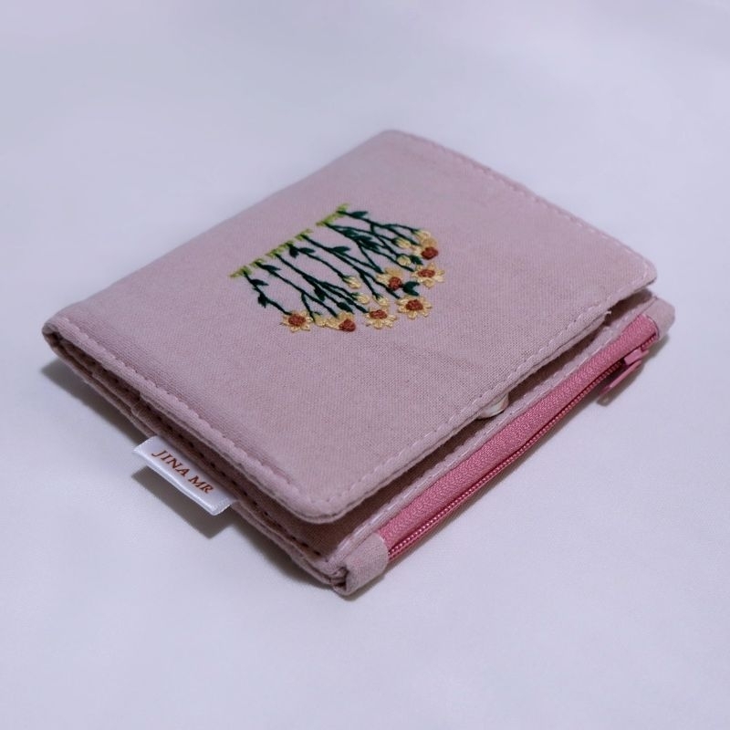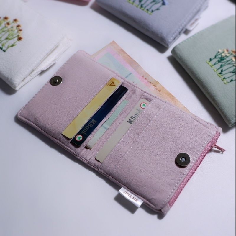 mini purse 03 (pre-order) กระเป๋าสตางค์ใบสั้น แบบพับกาง, ปักมือ, เลือกลายปักและสีผ้าได้