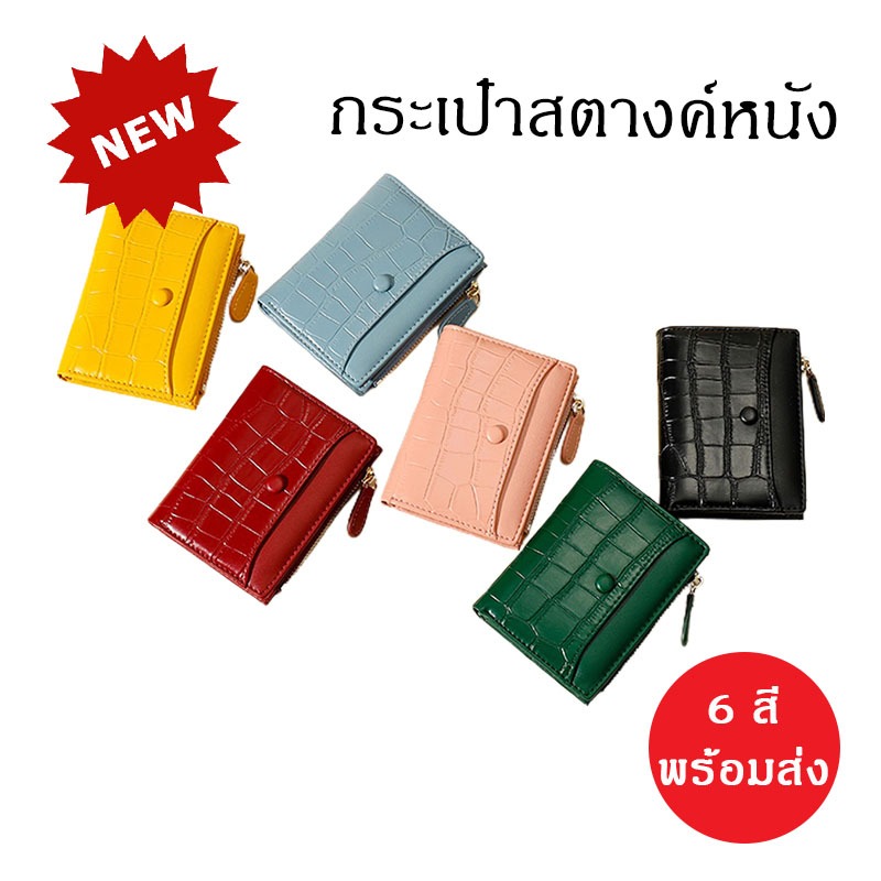minoshop พร้อมส่งในไทย กระเป๋าสตางค์ หนัง PU ลายหนังจระเข้ 6 สี