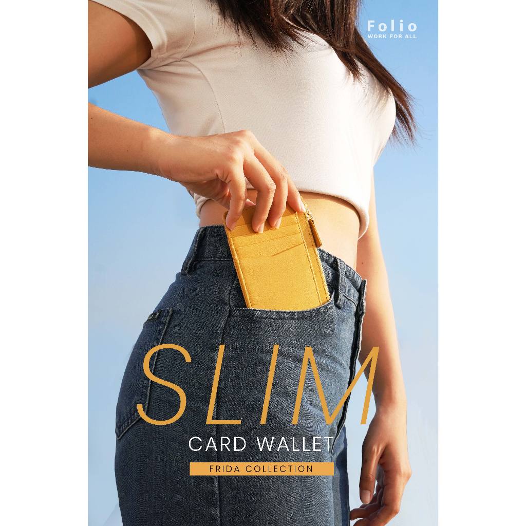 Folio : Frida Slim Card Wallet กระเป๋าสตางค์ใบสั้นทรงสลิม ผลิตจากหนังวัวแท้ รหัส-18332