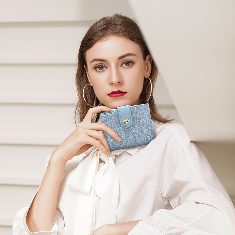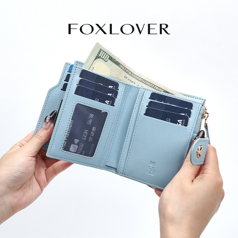FOXLOVER กระเป๋าสตางค์ ผู้หญิง ขนาดกะทัดรัด พร้อมช่องใส่บัตรหลายช่อง และช่องใส่เหรียญ