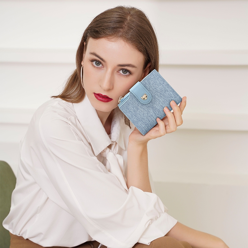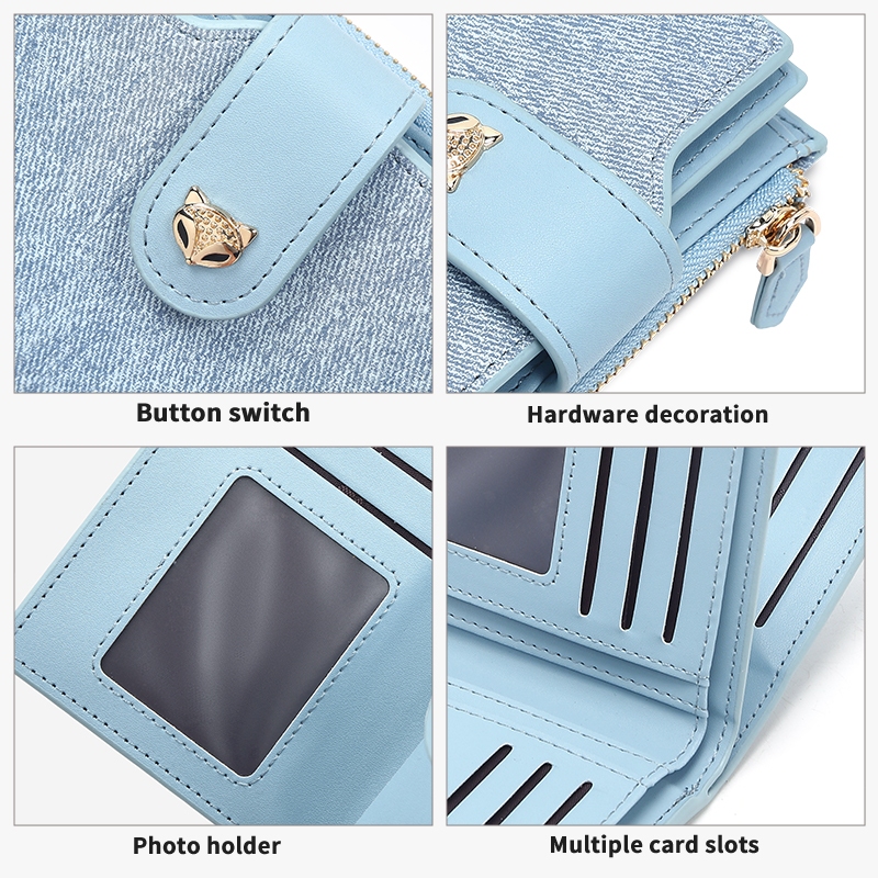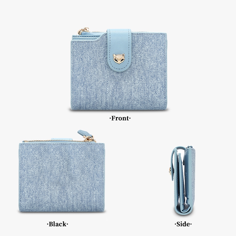 Moné.【COD&Ready stock】กระเป๋าสตางค์สตรีสั้นพับดีนิมขนาดใหญ่กระเป๋าเหรียญสตรี