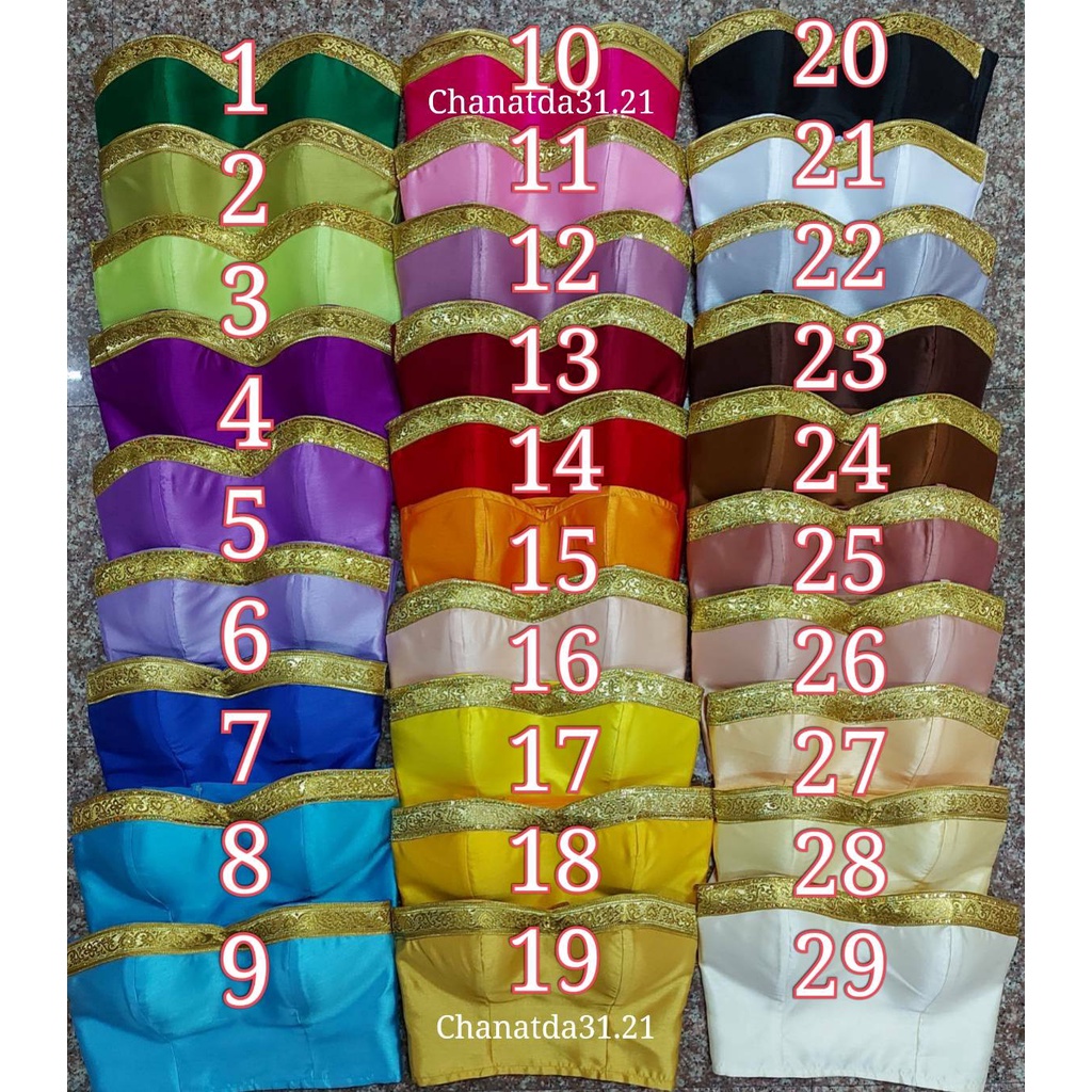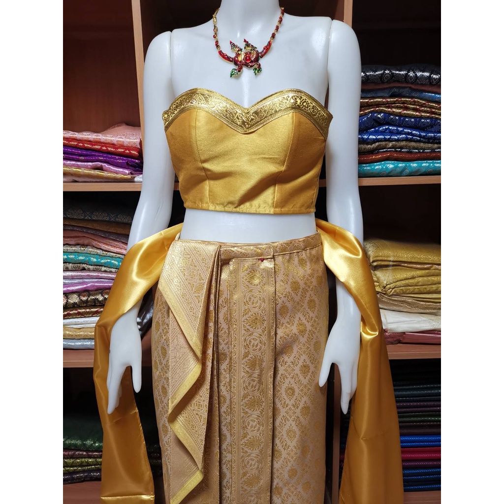 2.เกาะอกชุดไทยผ้าไหมอิตาลีเดินเทปทองแบบตรึ่งตัว มีไซต์ให้เลือกค่ะชุดที่11-20