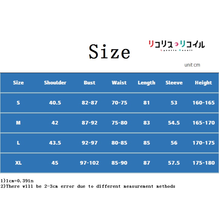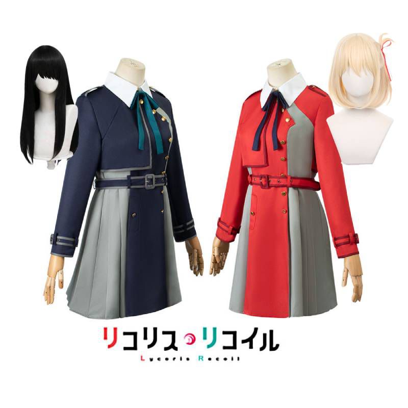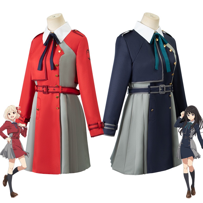 6/7 ชิ้น อะนิเมะ Lycoris Recoil Nishikigi Chisato Inoue Takina ผู้หญิง คอสเพลย์ ชุดสีแดง สีฟ้า ชุดเครื่องแบบ วิกผม ปาร์ตี้ฮาโลวีน เครื่องแต่งกายเวที ชุดสูทผู้หญิง