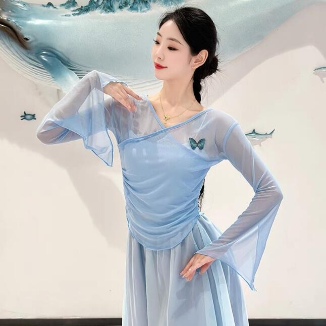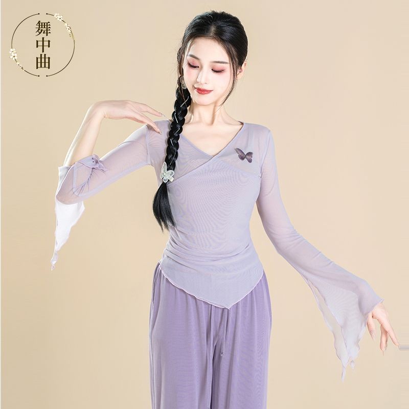 [YCF] เครื่องแต่งกายเต้นรําคลาสสิก Body Rhyme Gauze เสื้อผ้า, จีนเต้นรําชาติพันธุ์เต้นรําเครื่องแต่งกาย Body Practice เสื้อผ้าฤดูใบไม้ร่วง Tops