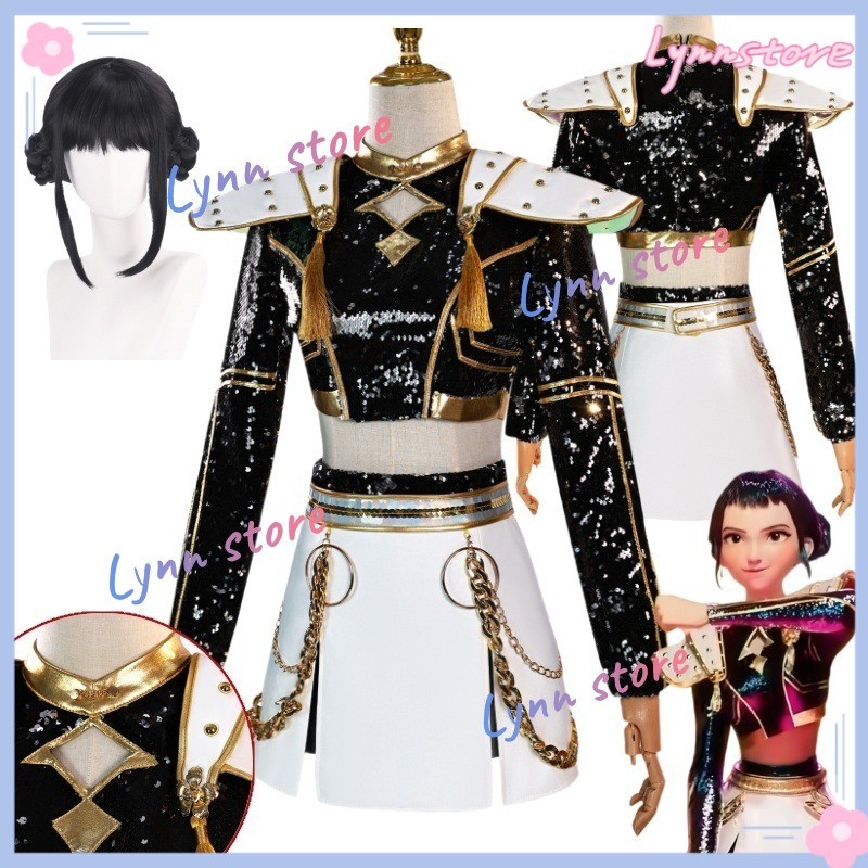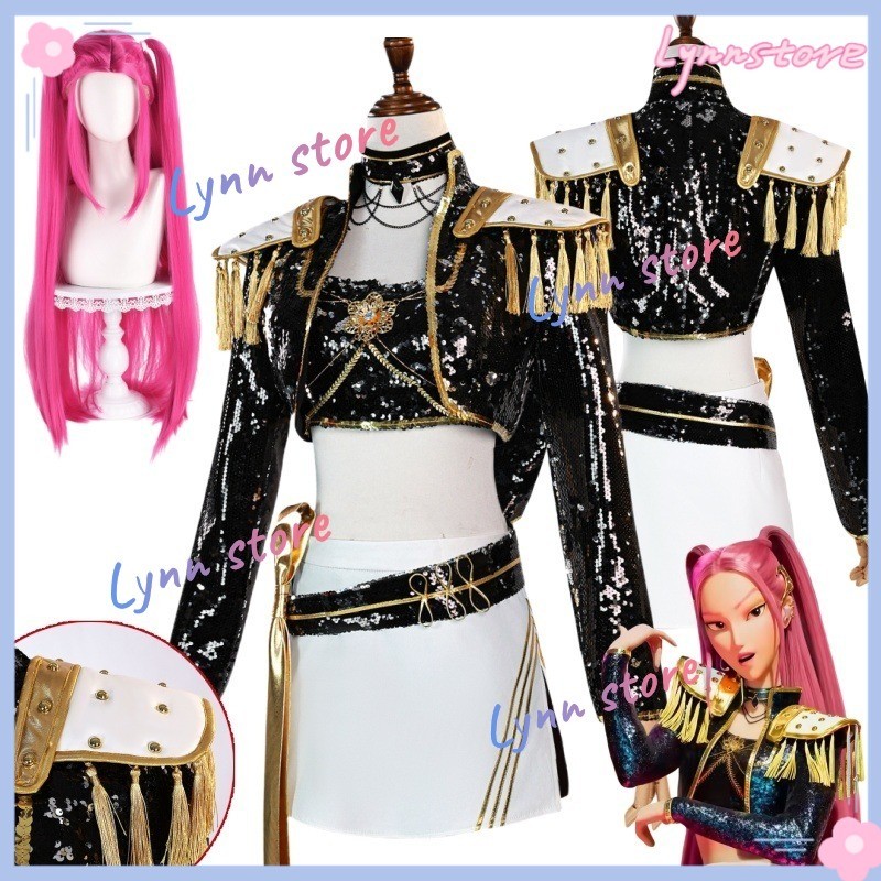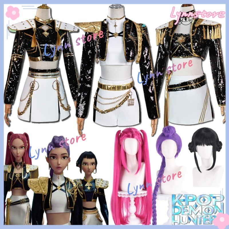 Animated KPOP DEMON HUNTERS คอสเพลย์เครื่องแต่งกาย RUMI ZOEY MIRA วิกผมสีดําทอง Stage ชุดอะนิเมะคอสเพลย์
