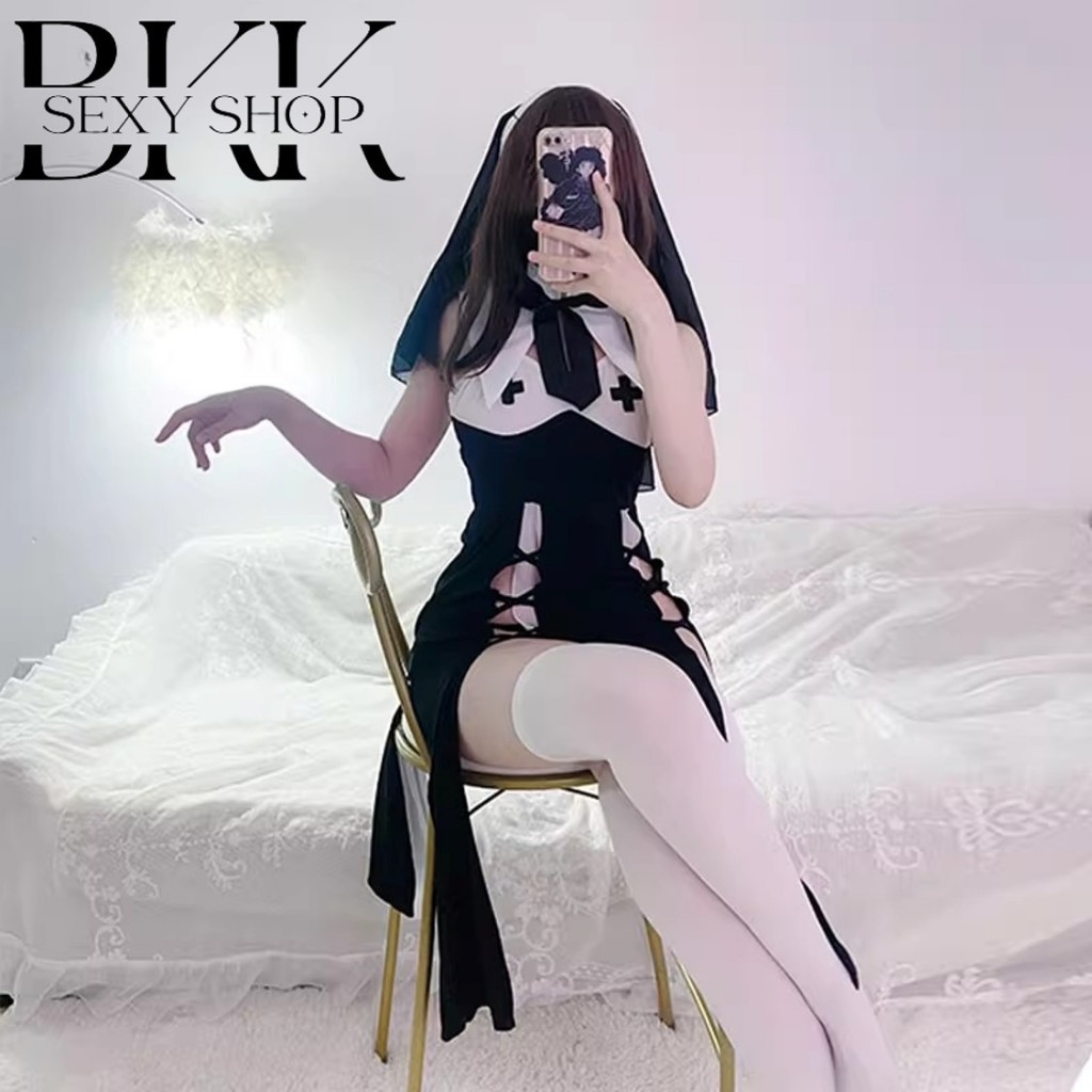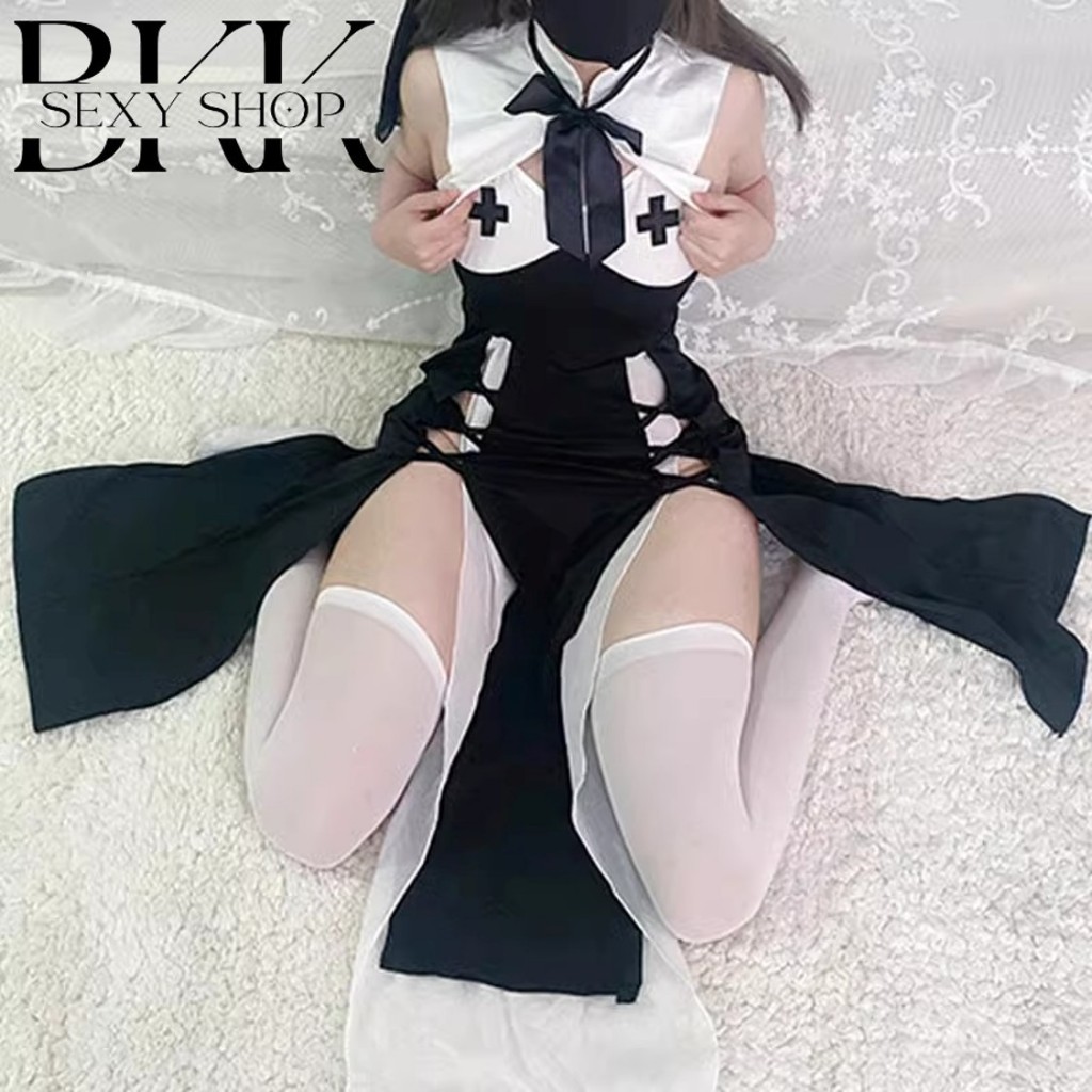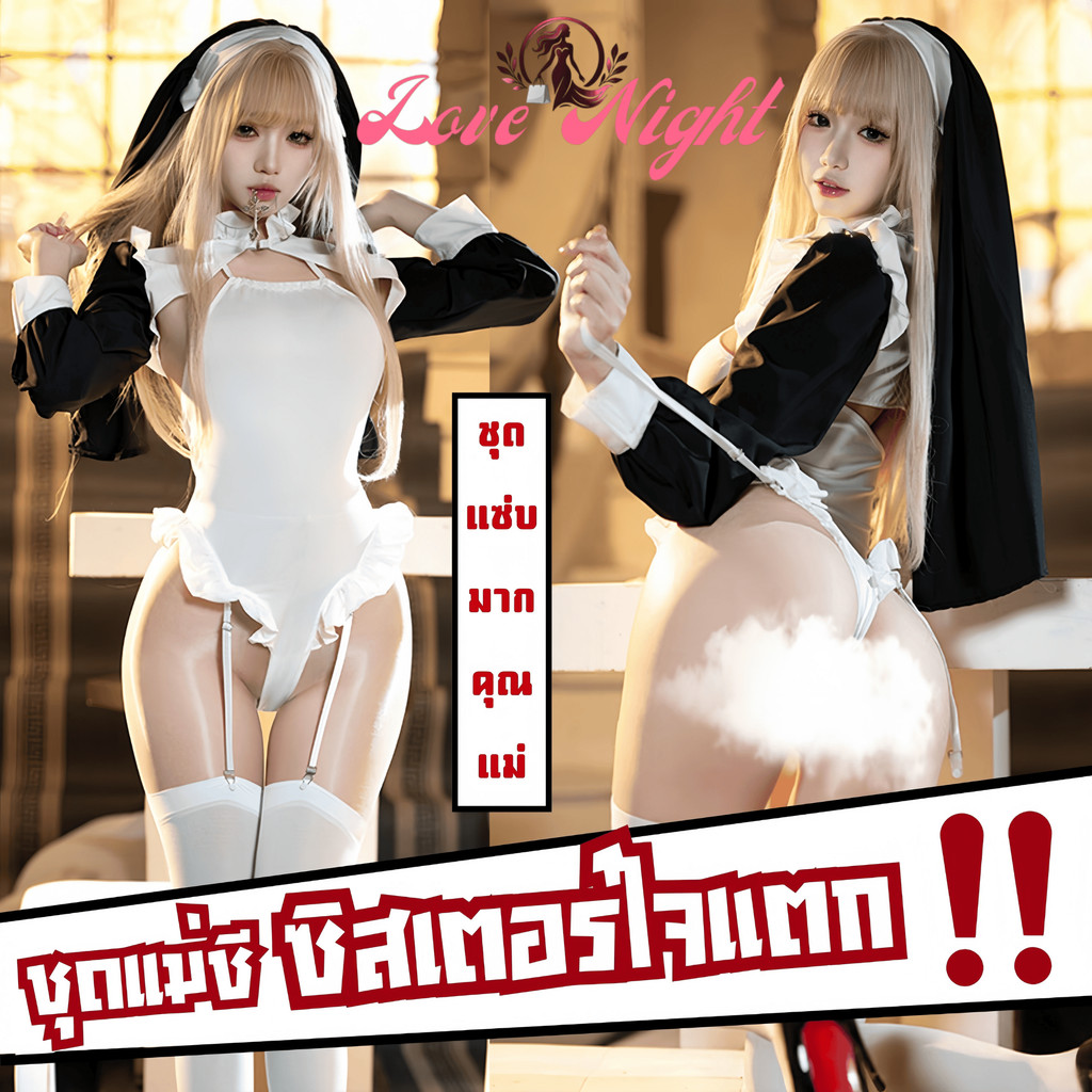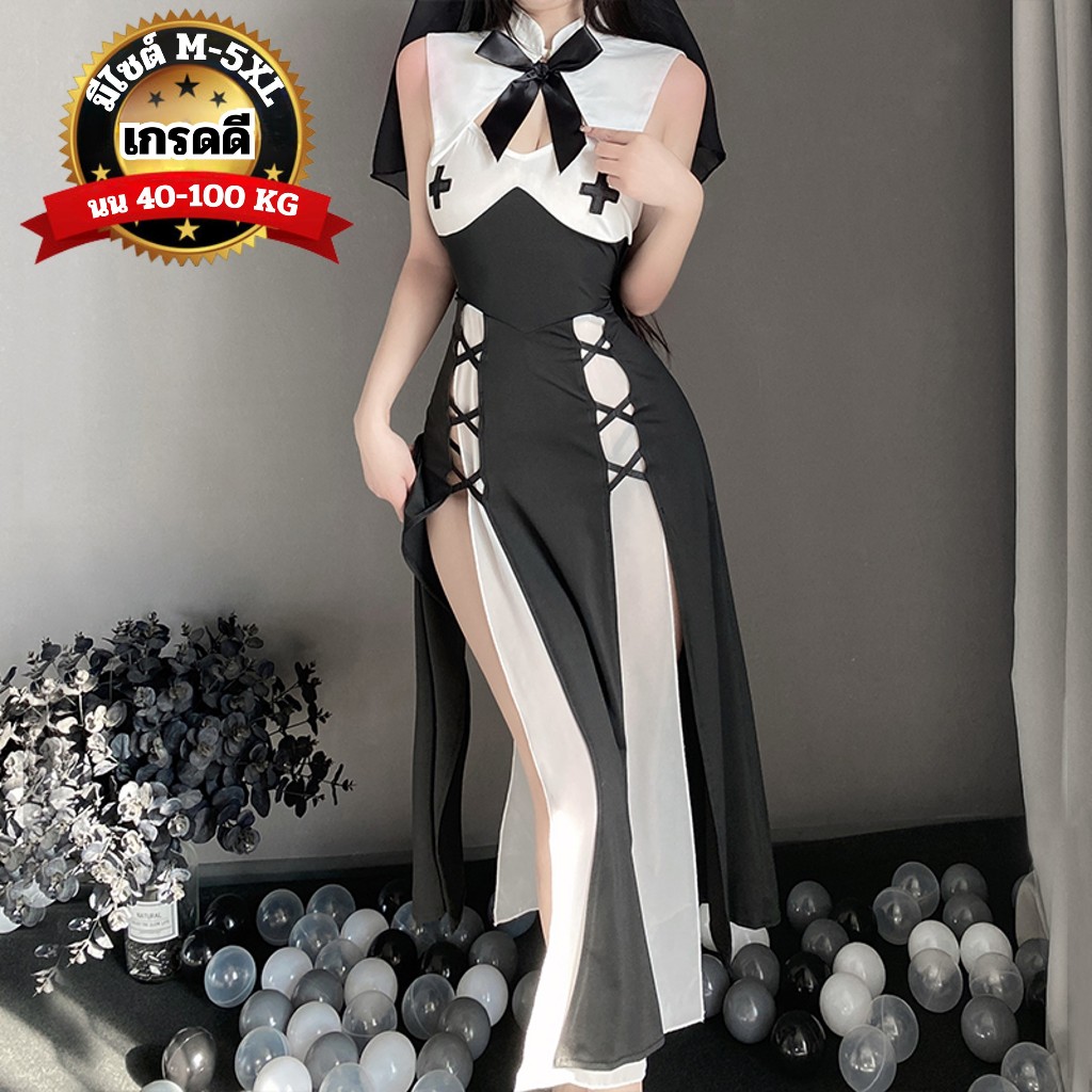 [ส่งด่วน กทม. 3 ชม.ถึง⚠️] LOVE NIGHT ชุดนอนเซ็กซี่ผู้หญิง ชุดแม่ชี ชุดคอสเพลย์ยั่วแฟน 💦 M-5XL | 40-100กก. ส่งเร็ว S-843