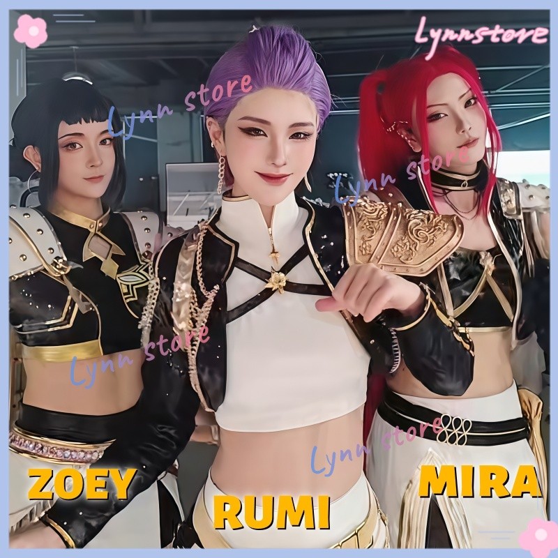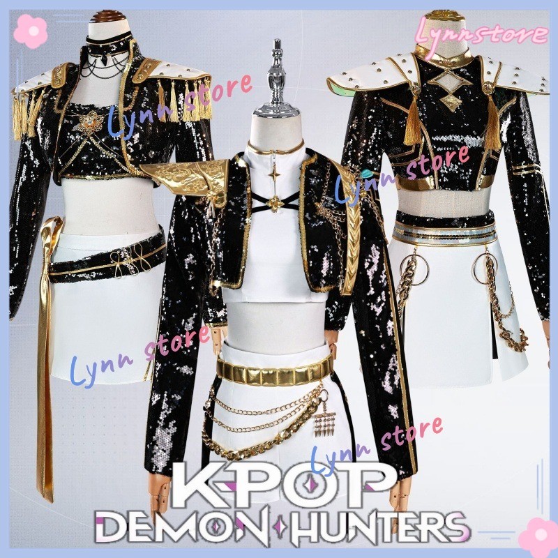 [คลังสินค้าพร้อม] KPop Demon Hunters คอสเพลย์เสื้อผ้าสีดําและสีขาว Rumi คอสเพลย์ Zoey คอสเพลย์ Mira คอสเพลย์การฟื้นฟูที่สมบูรณ์แบบ