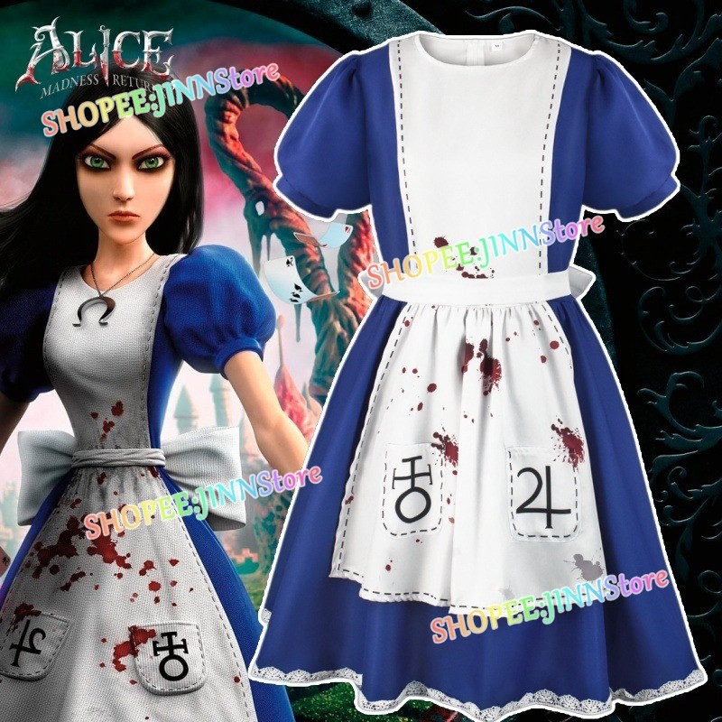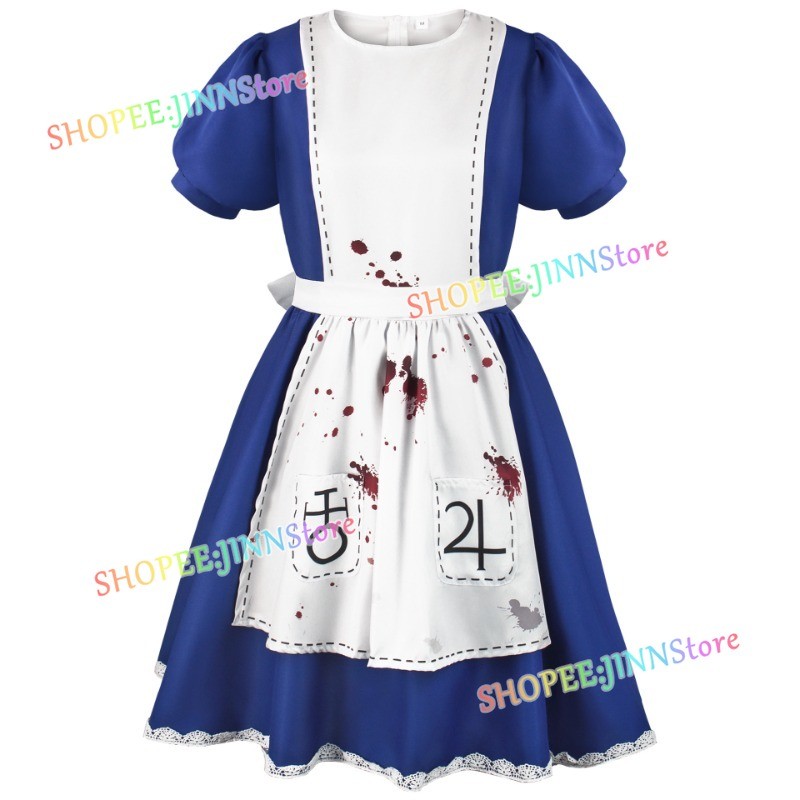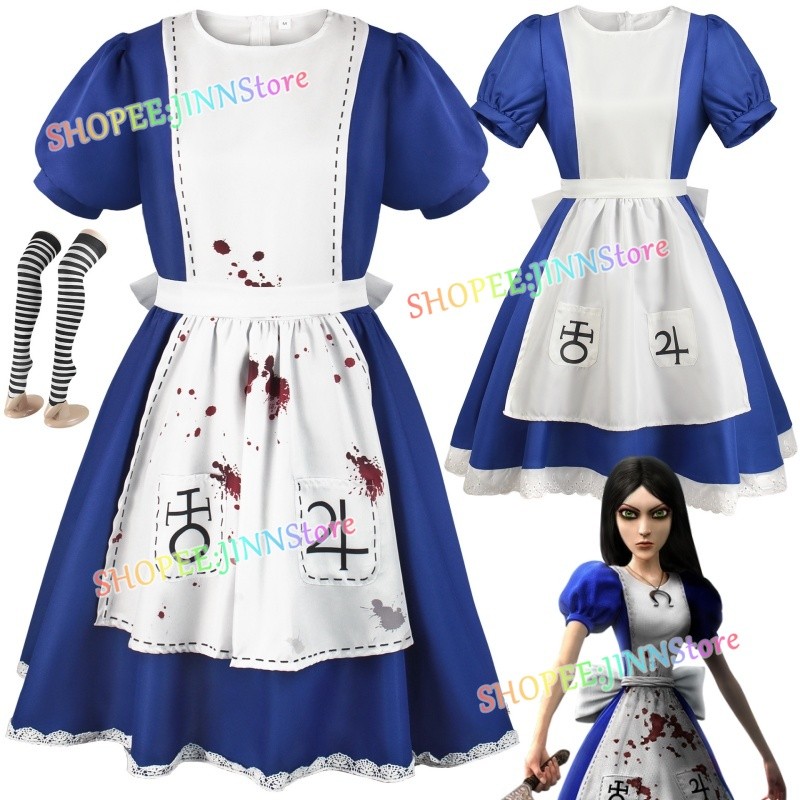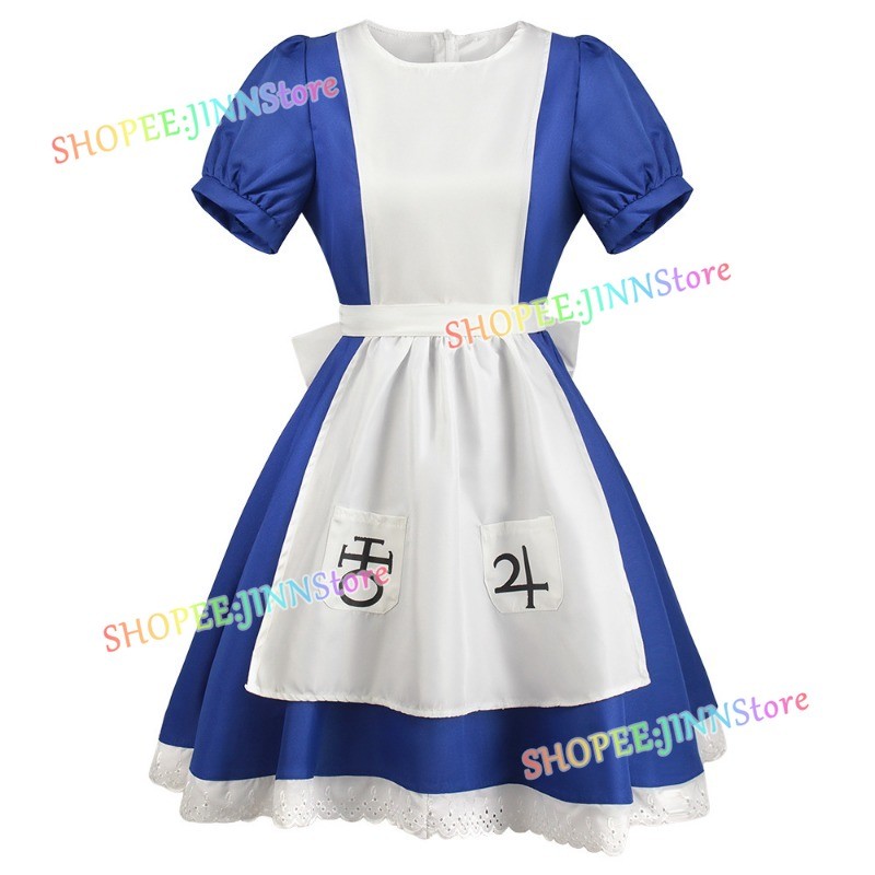 – Jinn – Alice: Madness Returns คอสเพลย์เครื่องแต่งกาย Alice Liddell คอสเพลย์ชุดแม่บ้าน Carnival อะนิเมะเครื่องแต่งกายปาร์ตี้