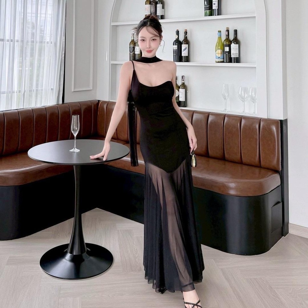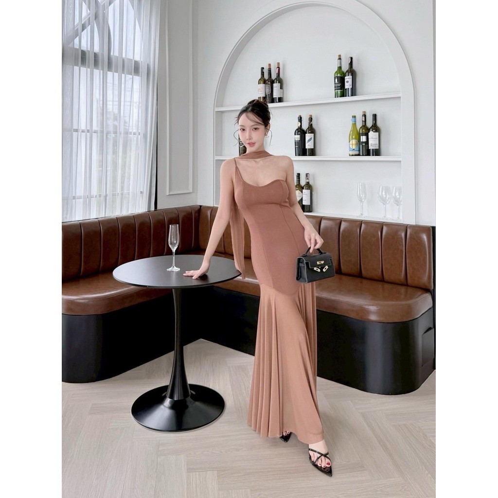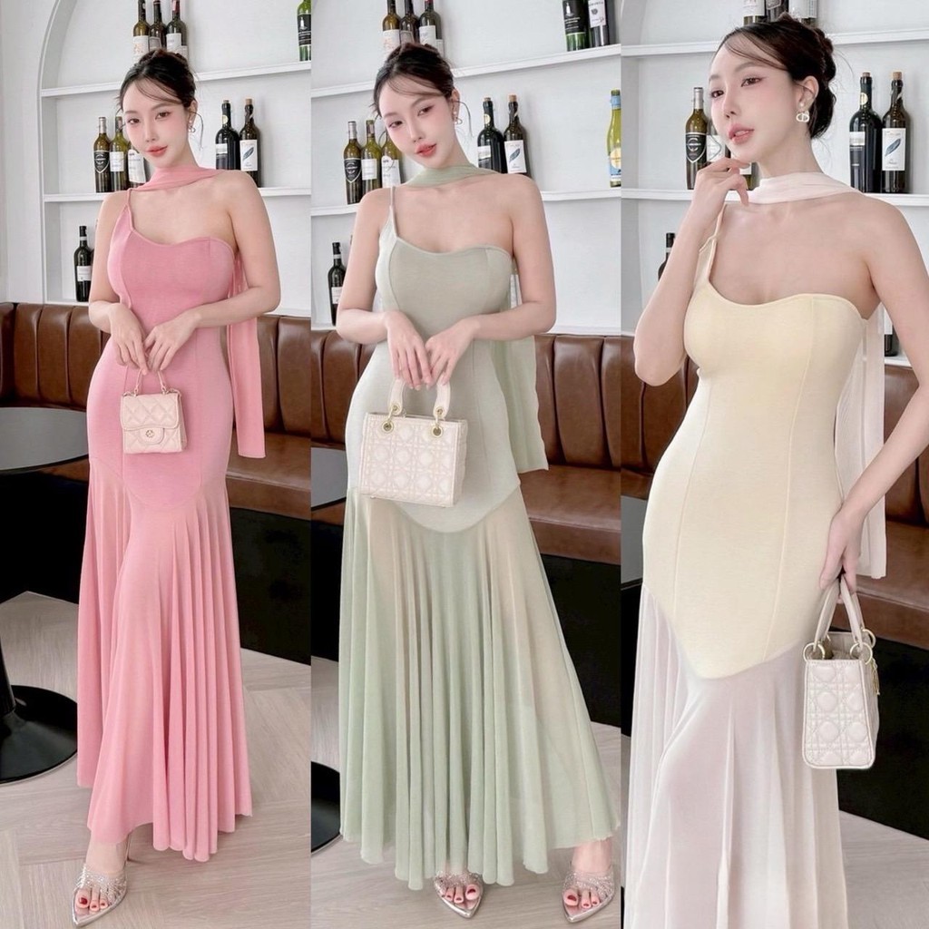A419 – เดรสออกงาน รุ่นผ้าพันคอ ชุดไปงานแต่ง ชุดออกเดท เดรสยาวสวยๆ