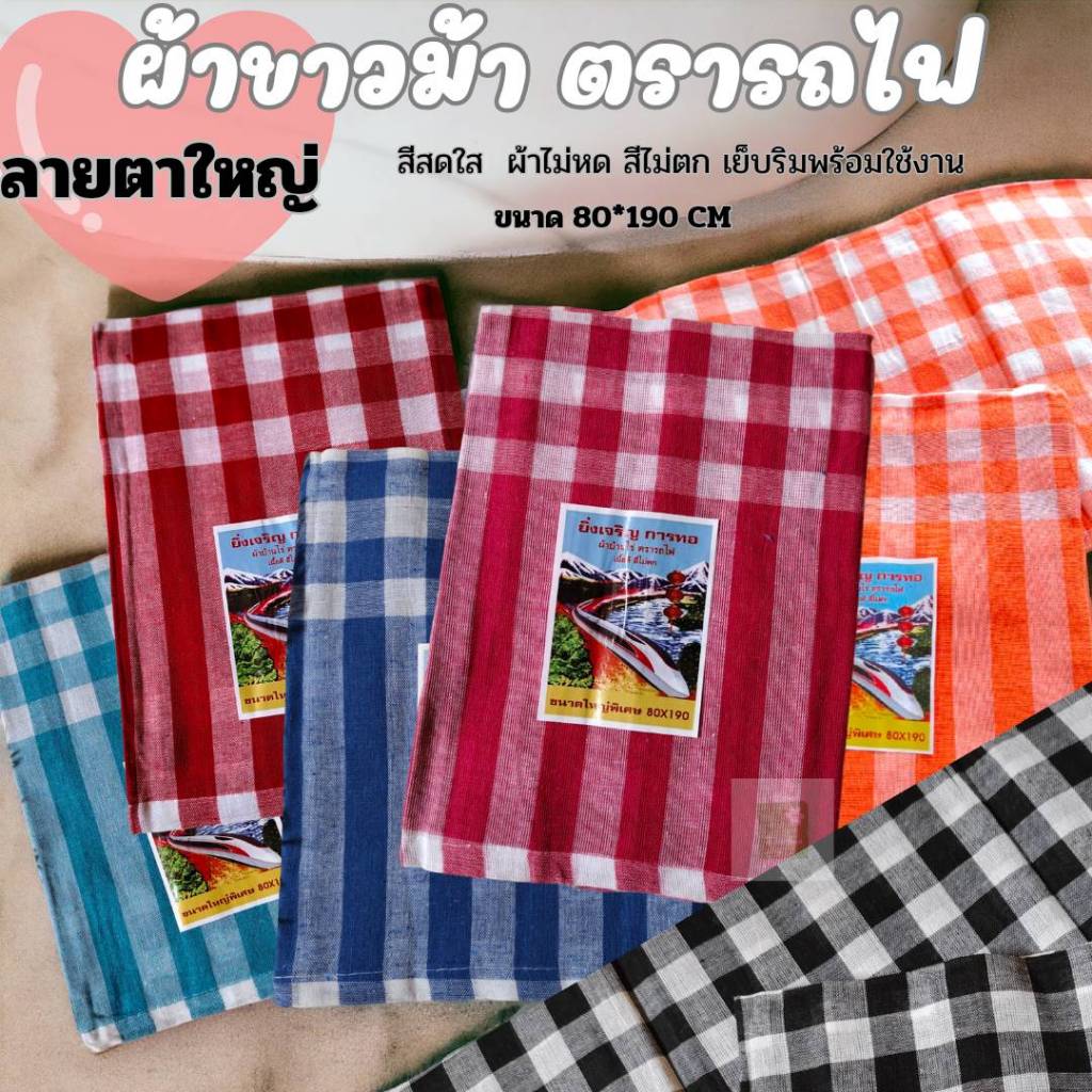(โทนตาใหญ) 10 ผืนคละสี) ผ้าขาวม้า ผ้าฝ้าย ผ้าไม่หด สีไม่ตก เย็บชายทุกผืน ขนาด 80×190 cm ขนาดมาตรฐาน