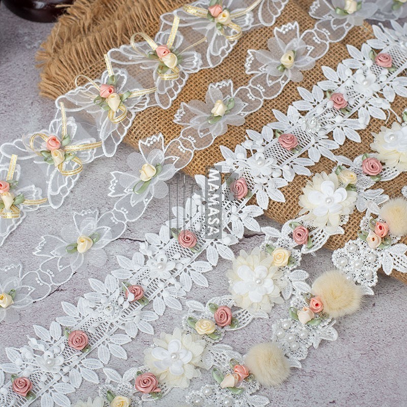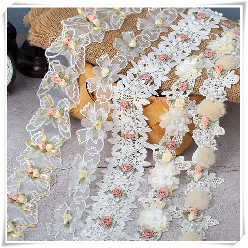 นางฟ้าวานิลลากุหลาบลูกปัดสามมิติดอกไม้เย็บปักถักร้อยลูกไม้ ทําเอง แฮนด์เมดตกแต่งอุปกรณ์ลูกไม้