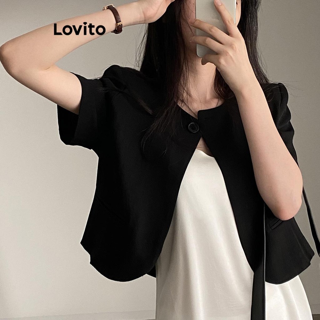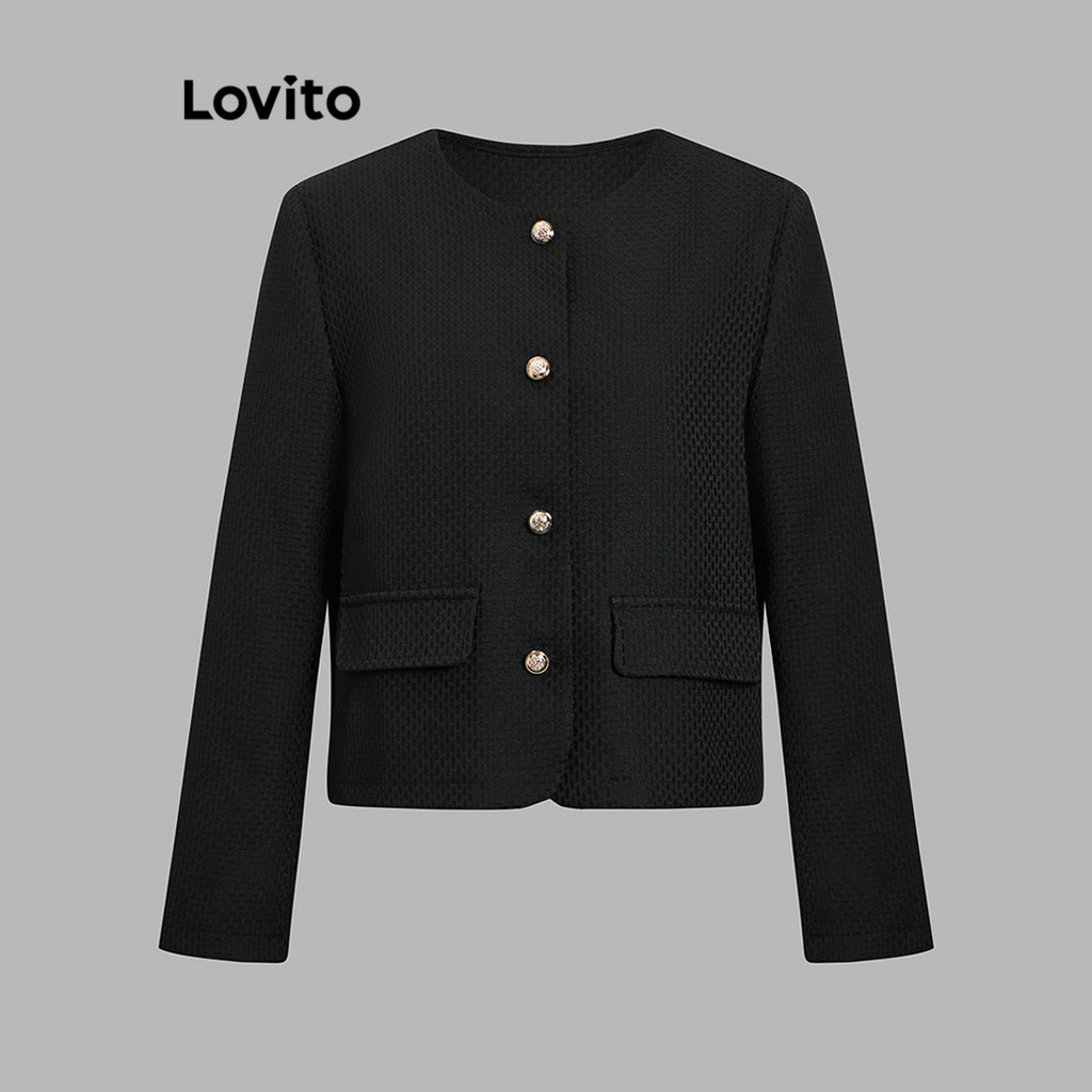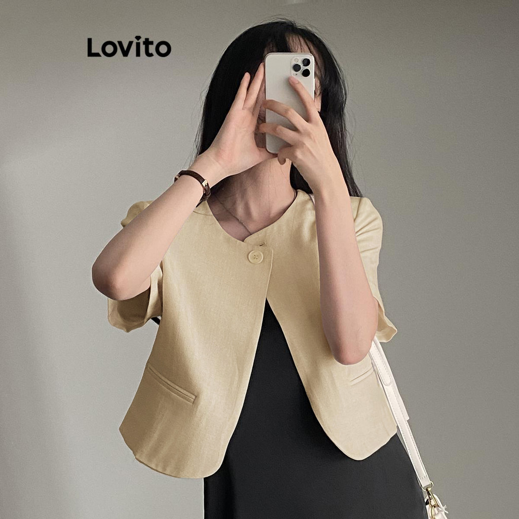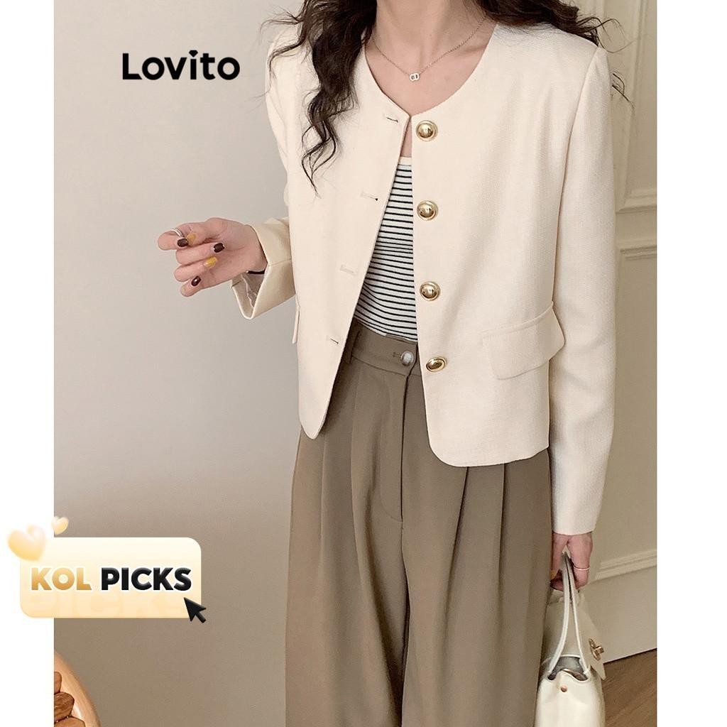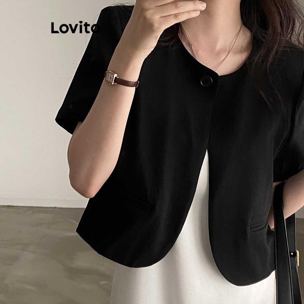 (Trendy) Lovito เสื้อเบลเซอร์ลําลองเสื้อเบลเซอร์ปุ่มธรรมดาสําหรับผู้หญิง LNM69297