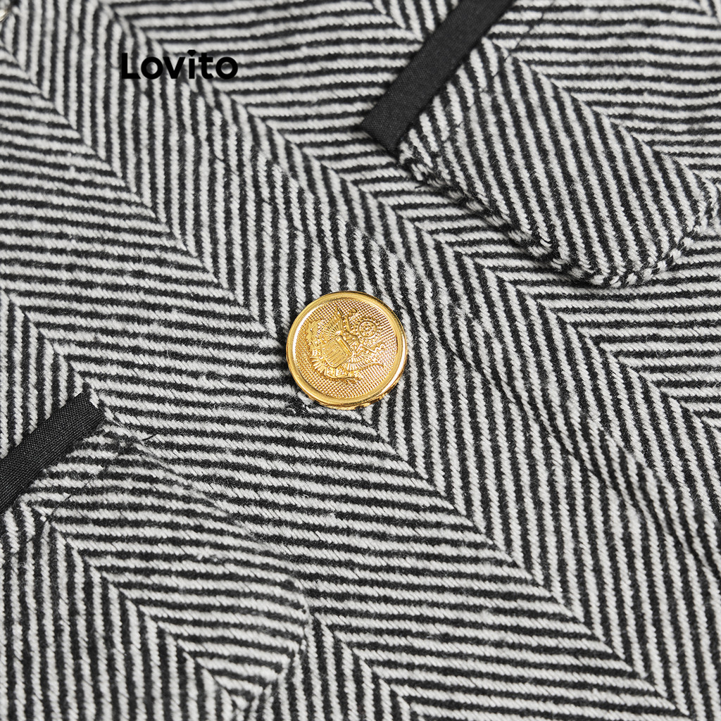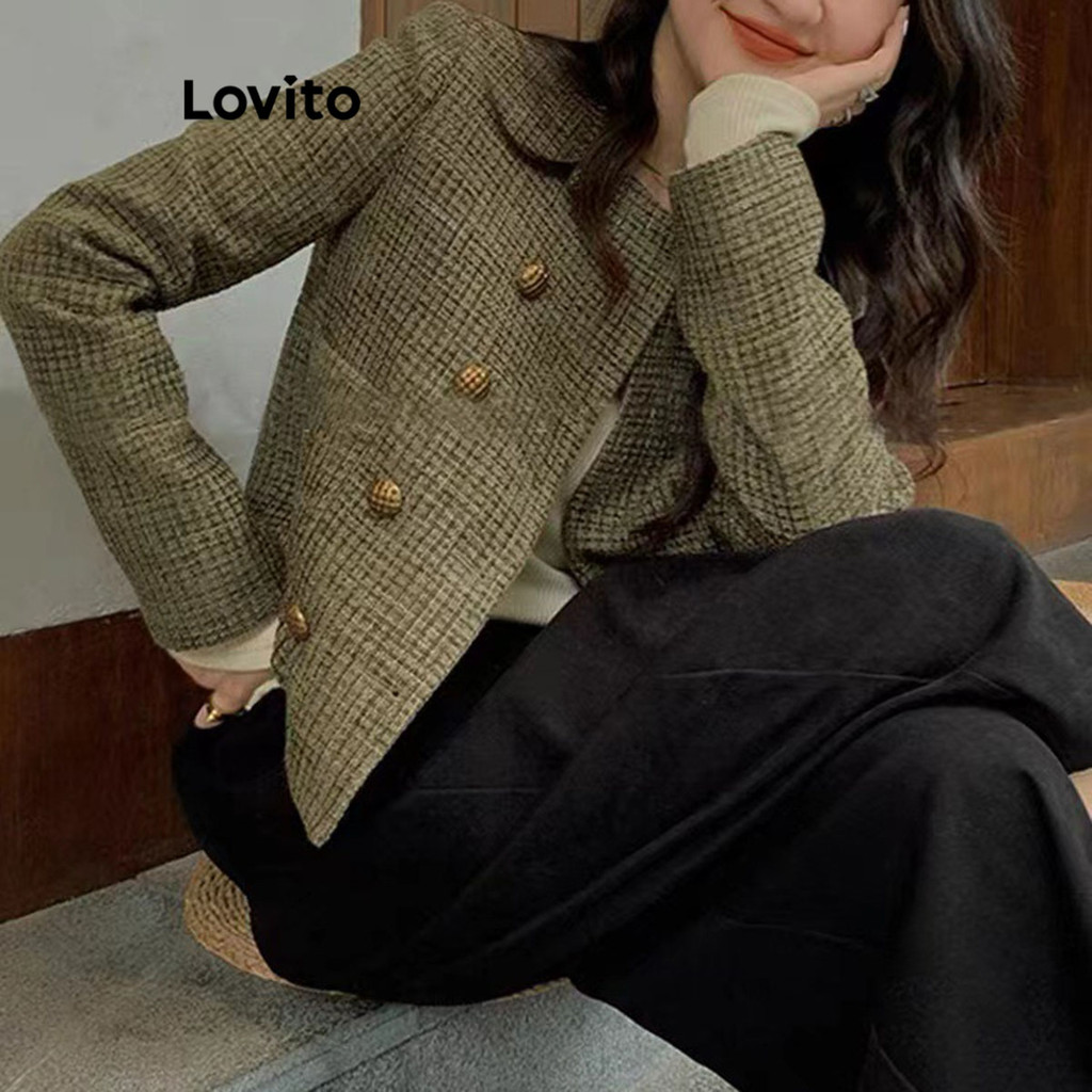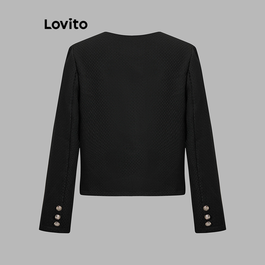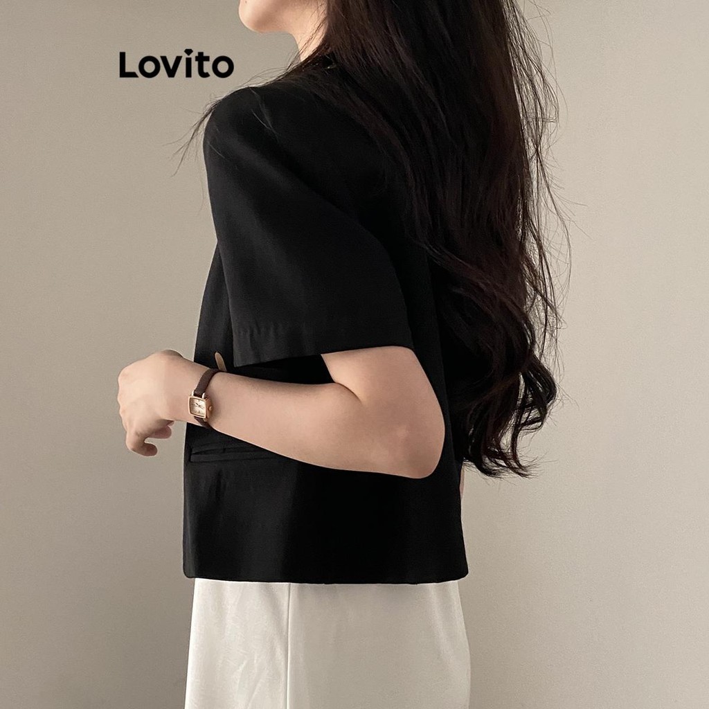 (Trendy) Lovito เสื้อเบลเซอร์ลําลองเสื้อเบลเซอร์ปุ่มธรรมดาสําหรับผู้หญิง LNM69297